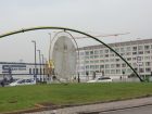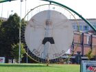 L’installazione intitolata “Arcobaleno di pace. Il tempo dell’uomo” fu realizzata dal Comune nel 2005: è composta di una struttura in acciaio ad alta resistenza, a forma di arco, di vari colori, lunga trenta metri, composta da tre sezioni di 10 metri di 700 chili l’una. Al centro dell’arcobaleno un grande cerchio che contiene al suo interno l’immagine dell’Uomo vitruviano, che ruota a seconda del vento. Negli anni l’Uomo vitruviano è stato più volte preso di mira dai vandali: c’è chi ha disegnato dei boxer e ha scritto “Kosì è meglio” e chi con le forbici ha tagliato dei lembi del telo. La speranza è che questa volta Leonardo da Vinci sia lasciato in pace.
