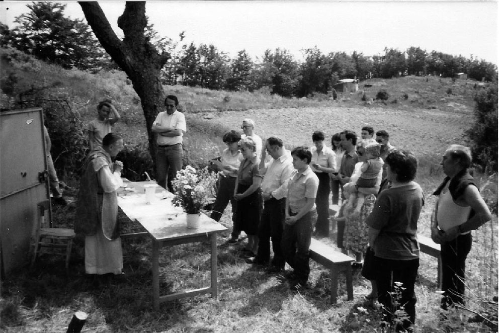 (Nella foto il vescovo emerito Gastone Simoni in visita all’Alpe, a destra Ennio Biagiotti e a sinistra Roberto Fedi)
