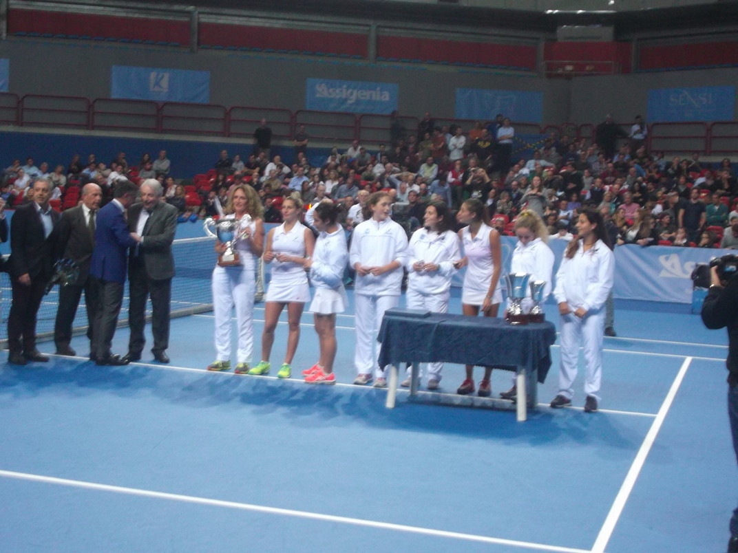 “Finalmente sono riuscita a vincere la mia prima partita in finale – ha detto la Dentoni – sono contentissima: in questa anni abbiamo tutte dato tanto per questa squadra. Quest’anno ho rimesso a posto alcune cose anche sul piano personale ed ho ritrovato la voglia di giocare”. “Dopo aver visto Corinna in singolare ero molto fiduciosa anche per il doppio – spiega il capitano Carla Mel – mi spiace solo un po’ per Martina Trevisan che non è arrivata nelle migliori condizioni a questa finale. Comunque siamo un grande gruppo che ha sempre giocato al massimo. Brave anche le giovanissime quando sono state schierate”. “E’ bello vincere – dice Camerin – la nostra squadra ha dimostrato die ssere più forte” “Una grande soddisfazione che arriva dopo una stagione incredibile – spiegano il presidente Francesco D’Ambrosi e il ds Franco Mazzoni – la vittoria nell’under 16 sia al maschile che al femminile e ora lo scudetto femminile e la semifinale maschile. Faremo una bella festa”.