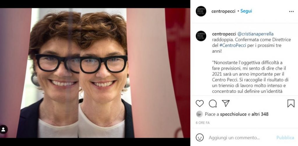 Con un post sulla propria fanpage di Instagram, il Centro per l’arte contemporanea Lugi Pecci ha annunciato la conferma della direttrice Cristiana Perrella per altre tre anni. “Nonostante l’oggettiva difficoltà a fare previsioni – commenta poi Perrella – mi sento di dire che il 2021 sarà un anno importante per il Centro Pecci. Si raccoglie il risultato di un triennio di lavoro molto intenso e concentrato sul definire un’identità chiara per il museo come centro di ricerca e produzione culturale legato al carattere, alla vocazione, alle storie del territorio ma allo stesso tempo partecipe del dibattito internazionale sui suoi temi più aggiornati e rilevanti e inserito in un’intensa rete di scambi e collaborazioni con principali istituzioni italiane e straniere. Molto è stato fatto in questa direzione e su queste basi continueremo a costruire la programmazione di tutte le attività del Centro Pecci per i prossimi anni del mio mandato”.
