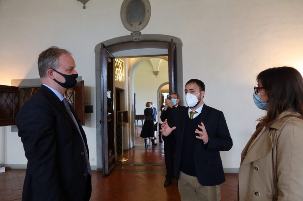 Questa mattina il direttore del Museo degli Uffizi, Eike Schmidt, ha visitato la Villa Medicea di Artimino, accompagnato dai rappresentanti del Comune di Carmignano – il sindaco Edoardo Prestanti, l’assessora alla Cultura Stella Spinelli e la responsabile dell’ufficio cultura del comune Saida Matteini – e della Tenuta di Artimino – l’amministratore delegato Francesco Spotorno Olmo, la responsabile marketing Claudia Cataldo e la direttrice della Villa Elena Naldi – per un sopralluogo volto ad estendere il progetto degli Uffizi diffusi anche al territorio carmignanese.