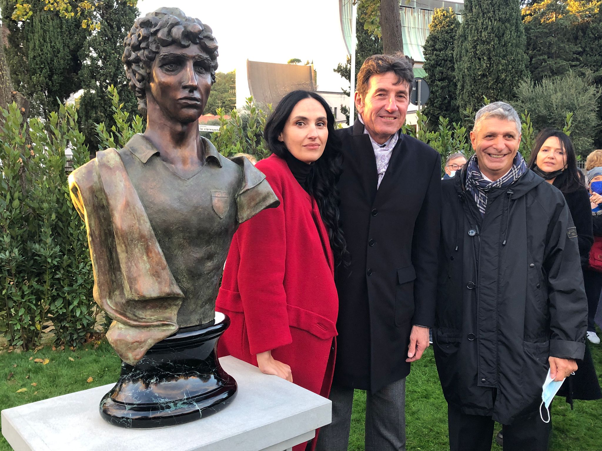 statua paolo rossi con morucci galli e fratello rossano