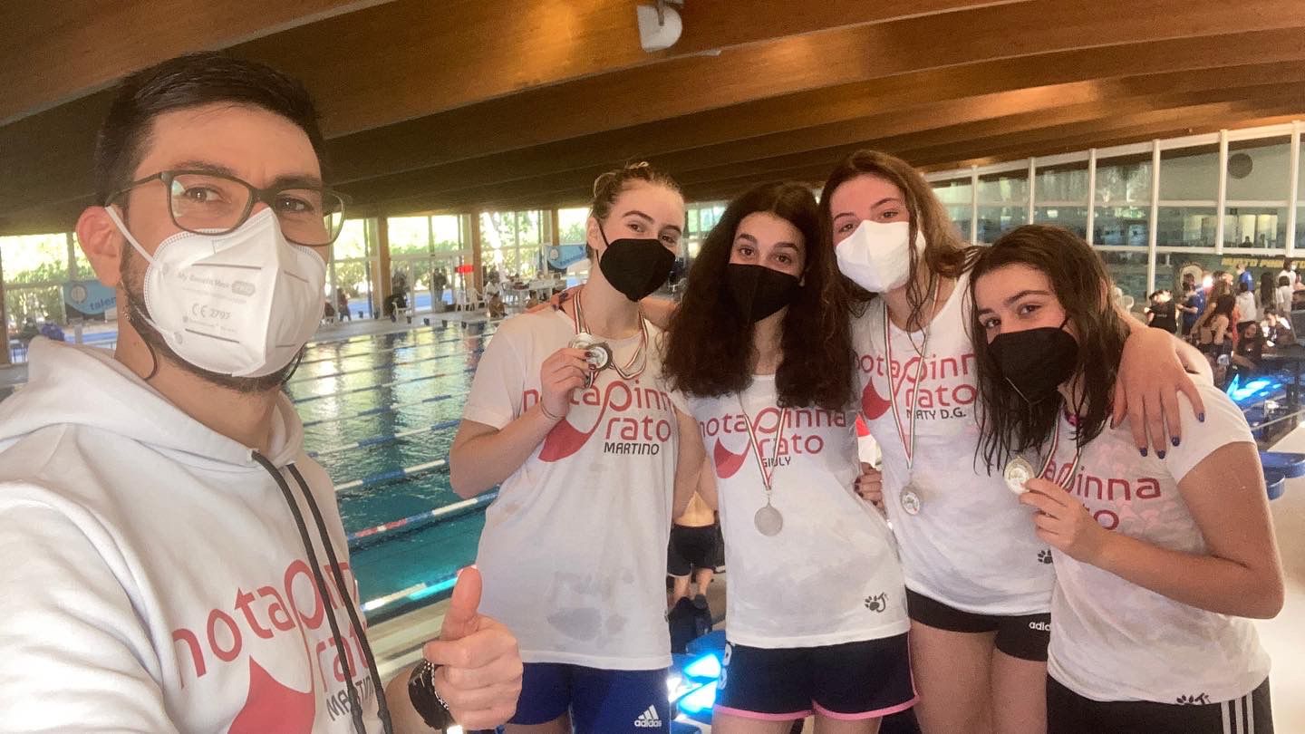 Anche Notapinna Prato ha preso parte ai campionati italiani primaverili di nuoto pinnato a Lignano Sabbiadoro. La società pratese porta a casa medaglie e prestazioni personali migliorate. Si parte dalla medaglia d’argento nella staffetta mista 2 pinne 2 monopinna (Matilde Del Greco, Caterina Leo, Martina Tronci, Giulia Mencarelli) e dalla medaglia di bronzo con Martina Tronci nella distanza dei 200 pinne. Notapinna Prato si classifica al 19esimo posto per quanto riguarda quella femminile e venticinquesima in quella finale.