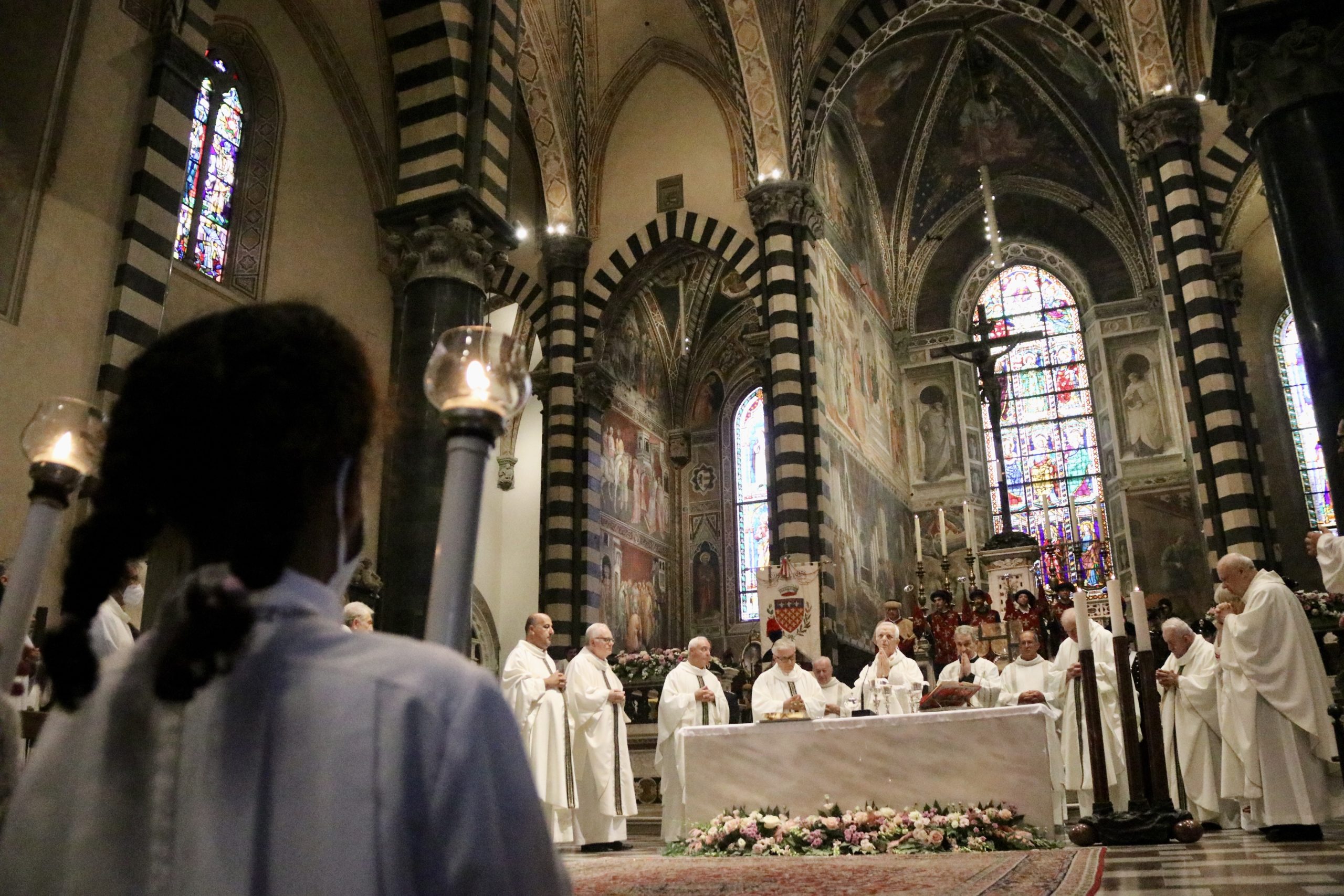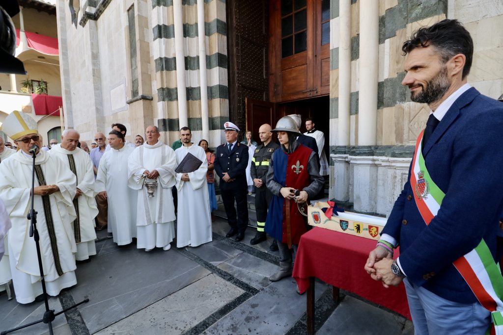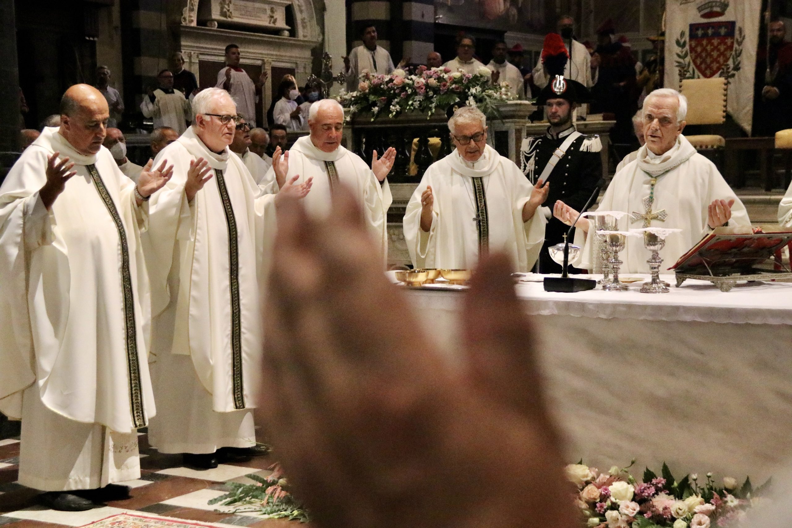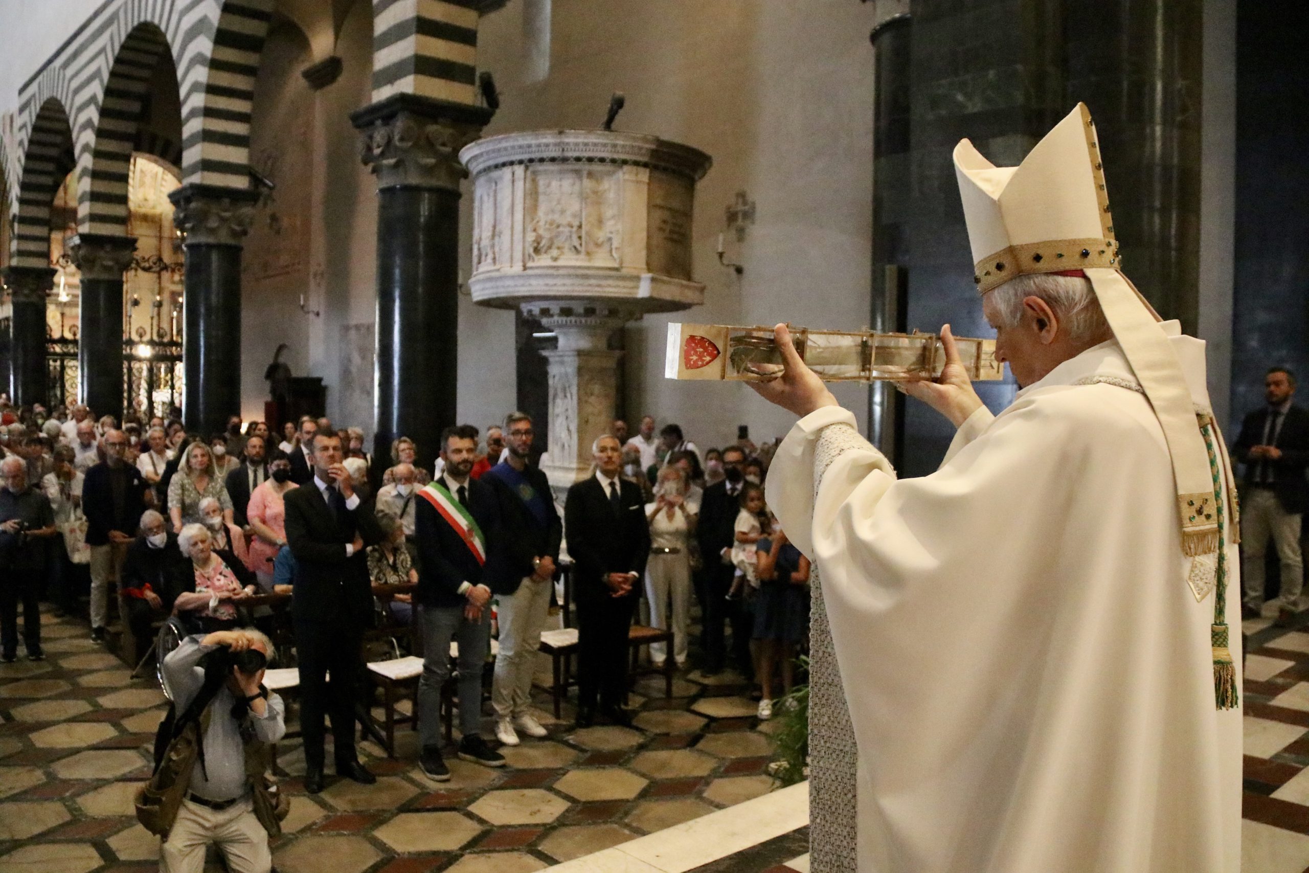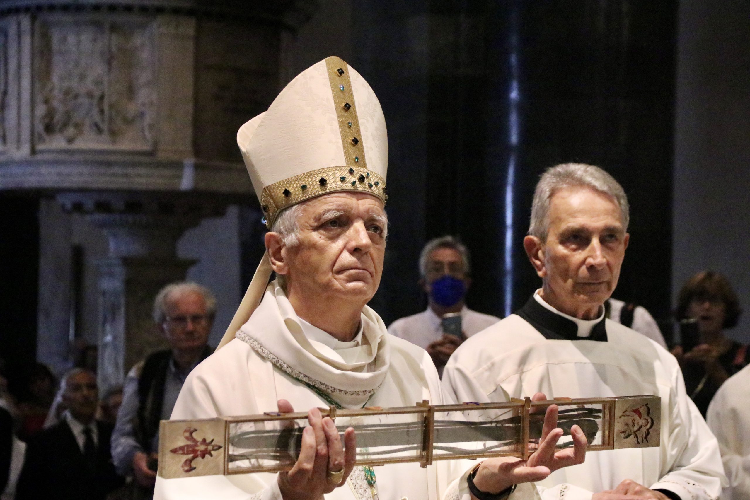 Al termine della celebrazione si è svolto un altro tradizionale e importante momento: l’offerta dei ceri per la Cappella del Sacro Cingolo donati alla Diocesi dall’Amministrazione comunale. Il rito si è svolto sul sagrato della cattedrale. In questa occasione il sindaco Matteo Biffoni ha rinnovato la disponibilità e l’impegno del Comune a camminare a fianco alla Chiesa pratese per il bene della città. Biffoni ha ricordato quando il 19 marzo 2020, in piena emergenza sanitaria, si tenne l’ostensione straordinaria del Sacro Cingolo per invocare la protezione sulla città. «In quel momento si è rinnovato un percorso: la parte laica e la parte religiosa della città si è presa cura di una comunità – ha detto il Sindaco –. Mentre i sanitari si prendevano si occupavano della malattia, le istituzioni si sono prese cura di una comunità smarrita e impaurita. Oggi che nubi di tensioni sociale e difficoltà economiche sembrano avvicinarsi, ci sarà ancora bisogno di questo connubio di essere fianco a fianco nel prendersi cura di una comunità che inizia a dare segnali di inquietudine e paura per il futuro. Insieme questa città sa affrontare tutte le sfide che il destino ci vorrà lanciare».