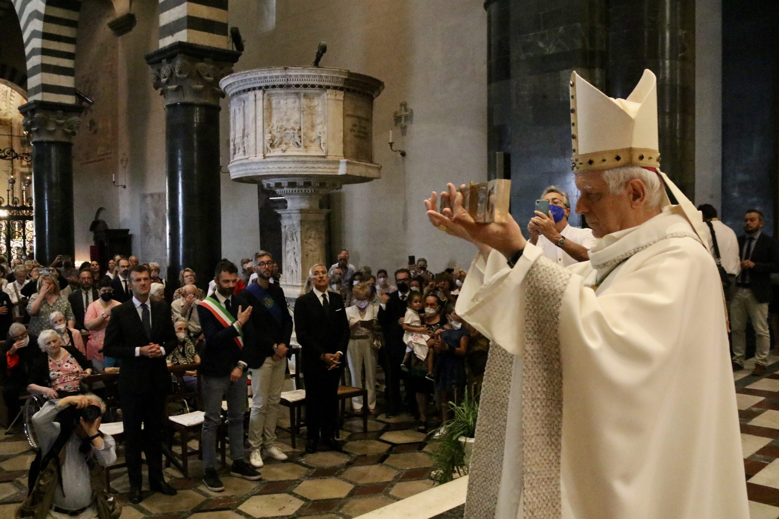 Le parole del sindaco Biffoni e del vescovo Nerbini al tradizionale rito dell’offerta dei ceri