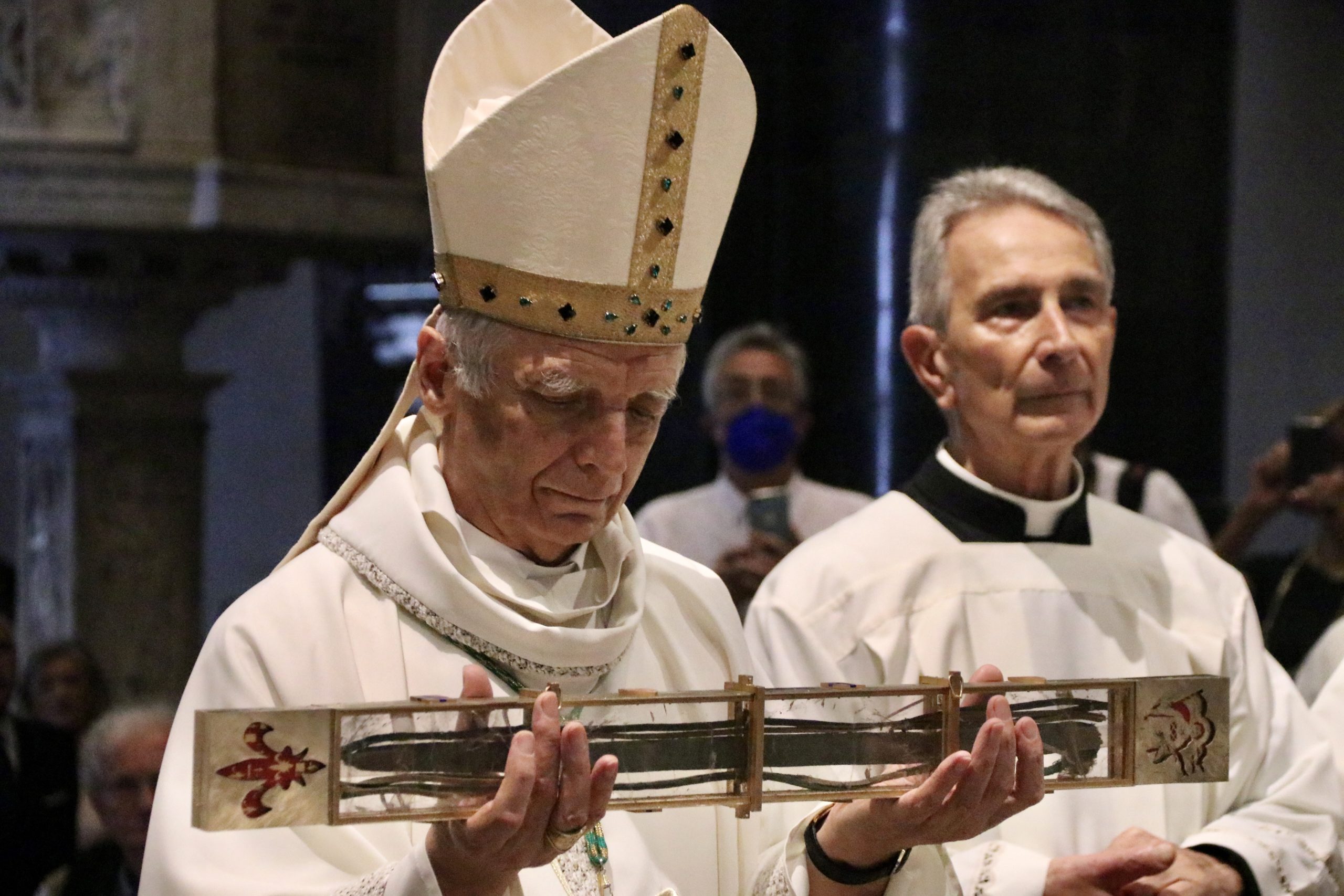 Come da tradizione la festa dell’8 settembre, conosciuta a Prato con il nome di «Madonna della Fiera», è iniziata con la celebrazione del solenne pontificale in cattedrale. Su invito del vescovo Giovanni Nerbini la messa è stata presieduta dal vescovo emerito di Fiesole Mario Meini e concelebrata da cinquanta sacerdoti del clero pratese. In duomo c’erano molti fedeli, arrivati fin dal mattino presto per venerare la Sacra Cintola della Madonna, protagonista della festa ed esposta per l’occasione nella Cappella dove è custodita da secoli.