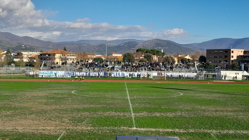 Si interrompe ad Agliana la striscia positiva del Prato. Dopo 5 vittorie e due pari arriva la prima sconfitta da quando Lucio Brando siede sulla panchina dei lanieri. Finisce 2-1 con le reti tutte nella ripresa. Nel primo tempo si fa preferire la squadra neroverde, che si rende pericolosa due volte con Mirval, poi con Torrini e ancora con Mirval e Mariani, che non riescono ad intervenire sotto misura dopo una spizzata di Torrini. Su un campo imperfetto, appesantito dalle copiose piogge dei giorni scorsi, il Prato fa fatica a sciorinare il suo noto bel gioco, ma nella ripresa la squadra di Brando scende in campo con piglio diverso e ci prova con Nicoli e Colombi. Al 21′ la rete dei pistoiesi: cross di Remedi dalla destra e mezza girata di Bigica in gol da centro area. Dieci minuti dopo l’Aglianese raddoppia con Mirval, che sfrutta un lancio lungo e anticipa Nucci. Il Prato reagisce e va vicino al gol, ma Spurio salva sulla linea. In pieno recupero arriva il rigore per i biancazzurri per un fallo di mano di Pardera. Il solito Mobilio non sbaglia, ma questa volta non basta.