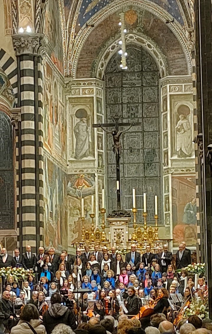 Più di 120 esecutori, un’organizzazione durata quasi un anno e la cattedrale completamente gremita di persone desiderose di tornare a partecipare al concerto di Natale dei pratesi. Dopo due anni di stop causa pandemia, la città di Prato è tornata ad abbracciare il tradizionale appuntamento con il ‘Musicone’. Quasi due ore di repertorio musicale legato alla città di Prato nell’ambito di una iniziativa promossa dalla Corale San Francesco, in collaborazione con la Cappella musicale della cattedrale. Coro, orchestra e solisti sono stati diretti dal maestro Paolo Fissi, eseguendo un concerto rappresentativo delle varie realtà musicali di Prato. A partecipare infatti ci sono stati cantori provenienti dal coro Annunciazione, gruppo corale Santa Maria a Colonica, coro parrocchiale di Tavola, coro Madonna dell’Ulivo, corale Quarta Eccedente, corale San Martino, corale Sacra Famiglia, coro Vox Artis, coro Interparrocchiale, coro Città di Prato e naturalmente Corale San Francesco.