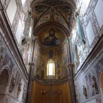 Una superficie musiva sterminata, 650 metri quadri, per 30 metri di altezza che straordinarie maestranze bizantine stesero agli inizi del XII secolo, sotto il Regno di Ruggero II, il fondatore del Regno normanno di Sicilia.