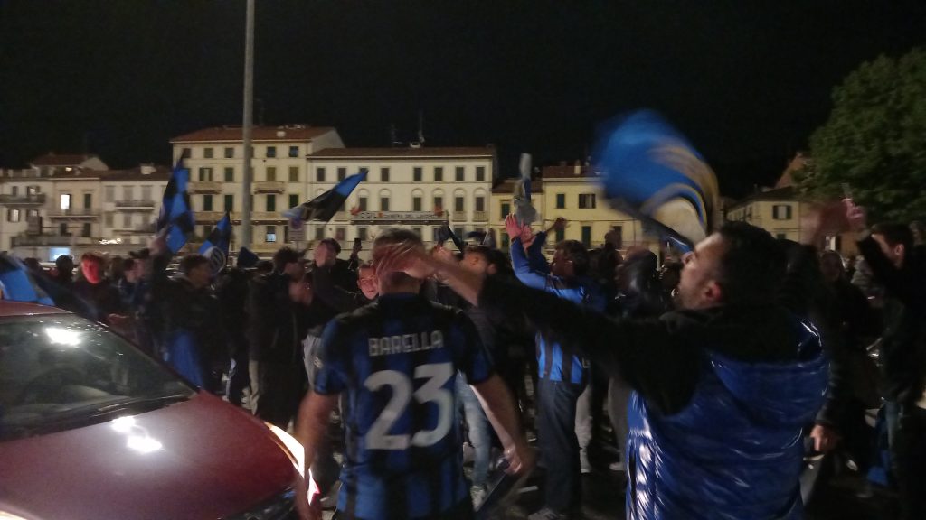 Tifosi nerazzurri in festa anche a Prato per la conquista del ventesimo scudetto dell’Inter che vale la seconda stella. La formazione allenata da Simone Inzaghi ha sconfitto il Milan per 2-1 (reti di Acerbi e Thuram, poi Tomori per i rossoneri), aggiudicandosi il sesto derby consecutivo ma soprattutto il campionato 2023/2024 con cinque giornate di anticipo. È la prima volta che nella storia del calcio italiano lo scudetto viene assegnato in un derby.