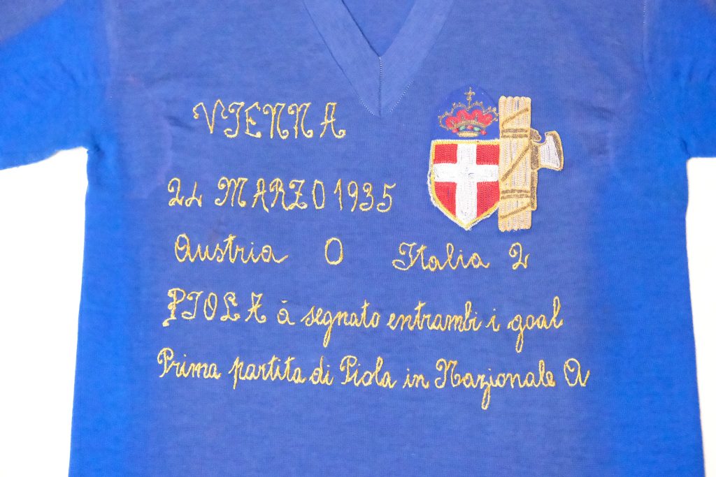 Ci sono le maglie di Giovanni Ferrari (Mondiali del 1934), Alfonso Negro (Olimpiadi del 1936) e Amedeo Biavati (1938), a testimoniare i due titoli iridati e l’oro olimpico di quegli Azzurri imbattibili, proseguendo poi con la maglia dell’esordio di Silvio Piola in Nazionale (1935, in Coppa Internazionale; divisa successivamente ricamata dalla madre, nella foto sotto).