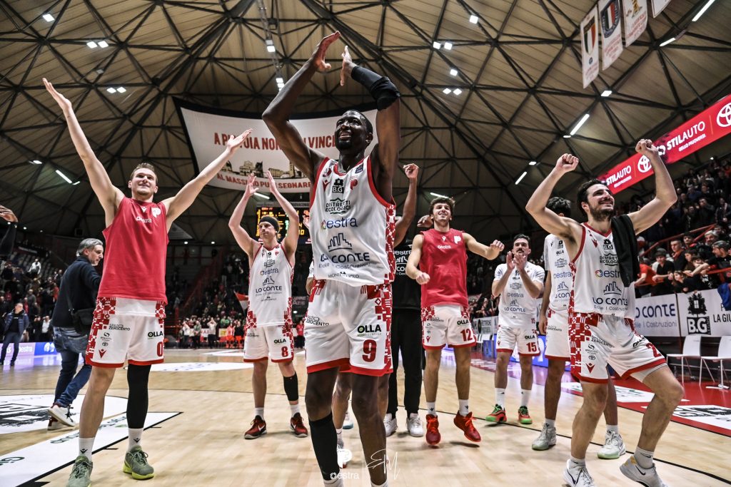Torna la luce in casa Estra che esce dal tunnel nero dopo 9 domeniche di buio. Un Christon da 29 punti e un Kemp da 14 punti e 13 rimbalzi conducono i biancorossi alla prima vittoria del 2025 per iniziare il girone di ritorno nel migliore dei modi. Da segnalare per i biancorossi l’espulsione di coach Okorn per doppio tecnico.