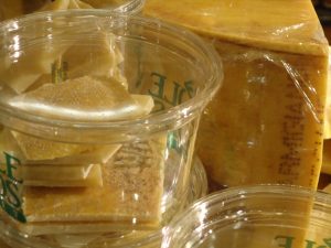 Un pacco da una libbra (454 grammi) di penne De Cecco, invece, si trova a 2.69 dollari; il pecorino romano sta a 11.99 alla libbra e il parmigiano reggiano (che profumo!) sale a 19.99: lo vendono a tranci, grattugiato, e vendono anche le croste!
