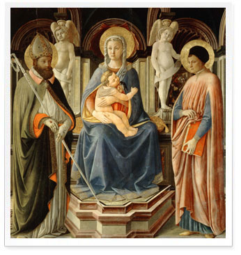 Il catalogo la presenta come opera del Maestro della Natività di Castello. Si tratta del misterioso pittore del primo Rinascimento che la recente esposizione a Palazzo Pretorio “Da Donatello a Lippi. Officina pratese” ha portato alla ribalta della critica e del pubblico, dedicandogli per la prima volta una vera e propria mostra nella mostra. Un autore raffinatissimo, di cui non si conosce con certezza il nome, la cui principale opera è la pala per la chiesa dei Santi Giusto a Clemente a Faltugnano, nel comune di Vaiano, ora conservata nel Museo dell’Opera del Duomo di Prato. È un dipinto straordinario (vedi la foto qui sotto), a cui proprio durante la mostra a Palazzo Pretorio è stata accostata la predella, divisa tra il museo di Philadelphia e la National Gallery di Londra. I 60.000 che visitarono l’esposizione pratese poterono così per la prima volta vedere ricomposta l’opera suddivisa da più di un secolo tra tre musei. Quelle piccole tavolette – la predella è una fascia suddivisa in riquadri di ridotte dimensioni che per diversi secoli ha fatto da base alle grandi pale d’altare – erano proprio dedicate alle storie dei due santi patroni di Faltugnano, Giusto e Clemente.