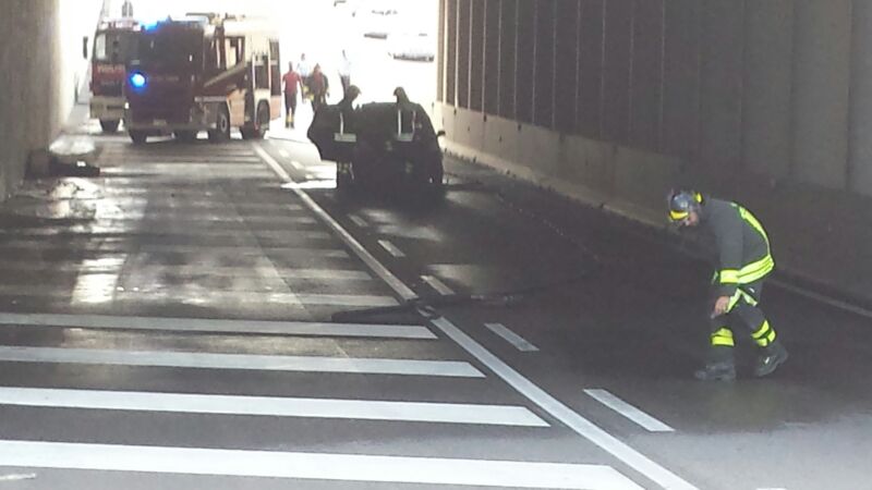 Il giovane, che per fortuna è incolume, ha fermato le auto che seguivano per impedire che si avvicinassero al veicolo in fiamme e ha chiamato i vigili del fuoco. Sul posto oltre ai pompieri anche due pattuglie della polizia municipale, che hanno chiuso il tunnel in direzione est. Grandi le ripercussioni sul traffico, nel punto critico della Declassata all’altezza del Soccorso, con code chilometriche in entrambe le direzioni. Dopo aver spento l’incendio, i vigili del fuoco hanno dovuto infatti chiudere il sottopasso anche in direzione ovest per controllare l’eventuale saturazione di gpl, visto che la vettura incendiata aveva la doppia alimentazione a benzina e a gas. La circolazione è ripresa regolarmente attorno alle 19,30 quando la Citroen è stata rimossa e la carreggiata pulita e messa in sicurezza.