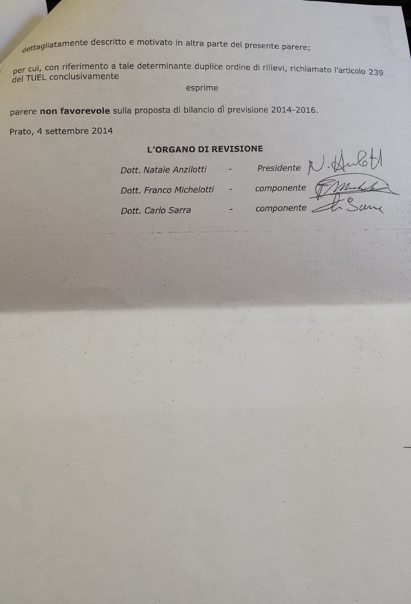 Nelle foto il testo completo dei sindaci revisori, con le loro osservazioni al bilancio