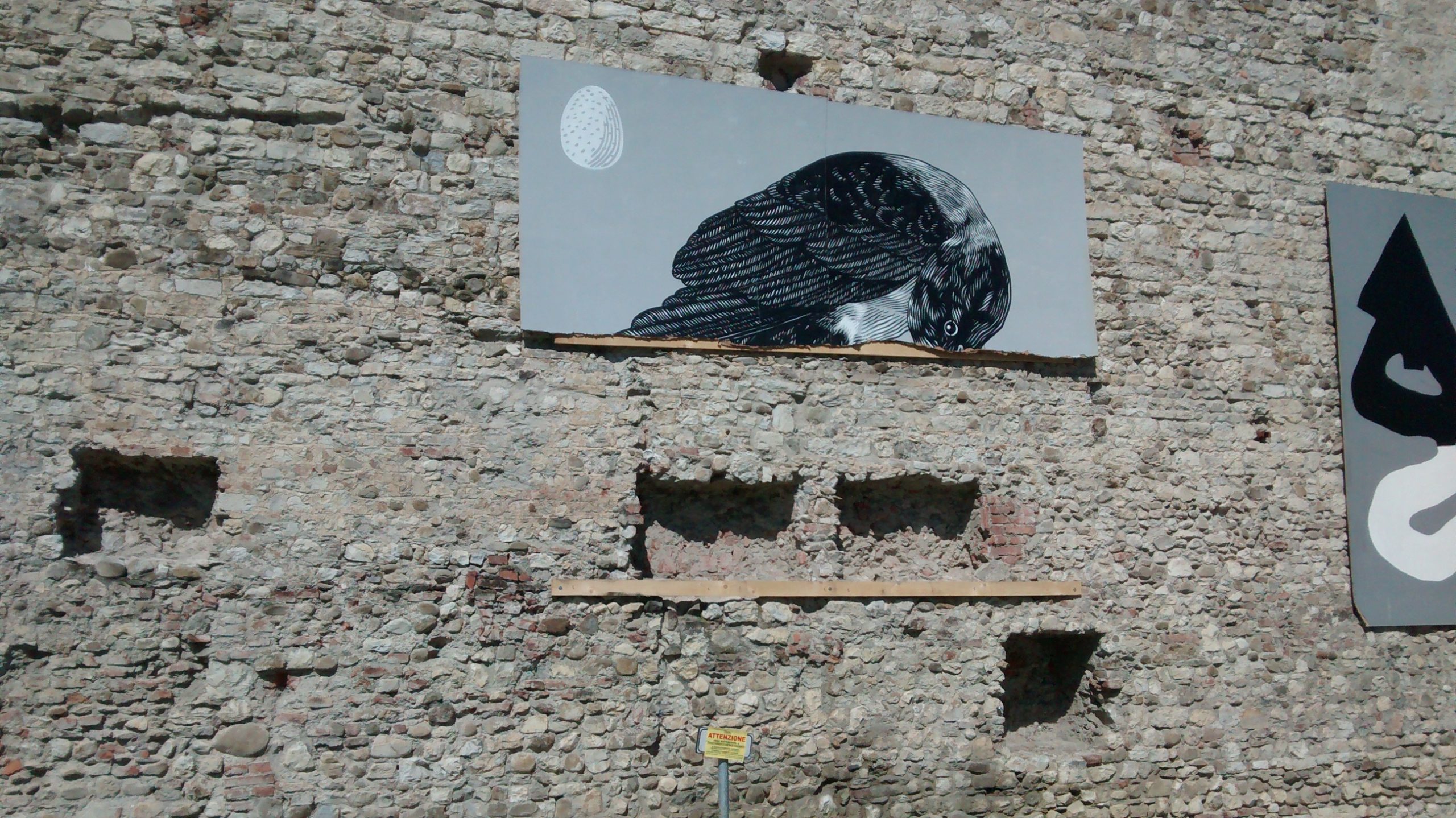 Pare che a danneggiare il murales siano stati dei vandali, proprio questa notte, anche se non c’è la certezza; resta il fatto, però, che una delle opere permanenti che dovevano creare un dialogo eterno tra la storia medievale e la vocazione contemporanea della città è stata irrimediabilmente persa.