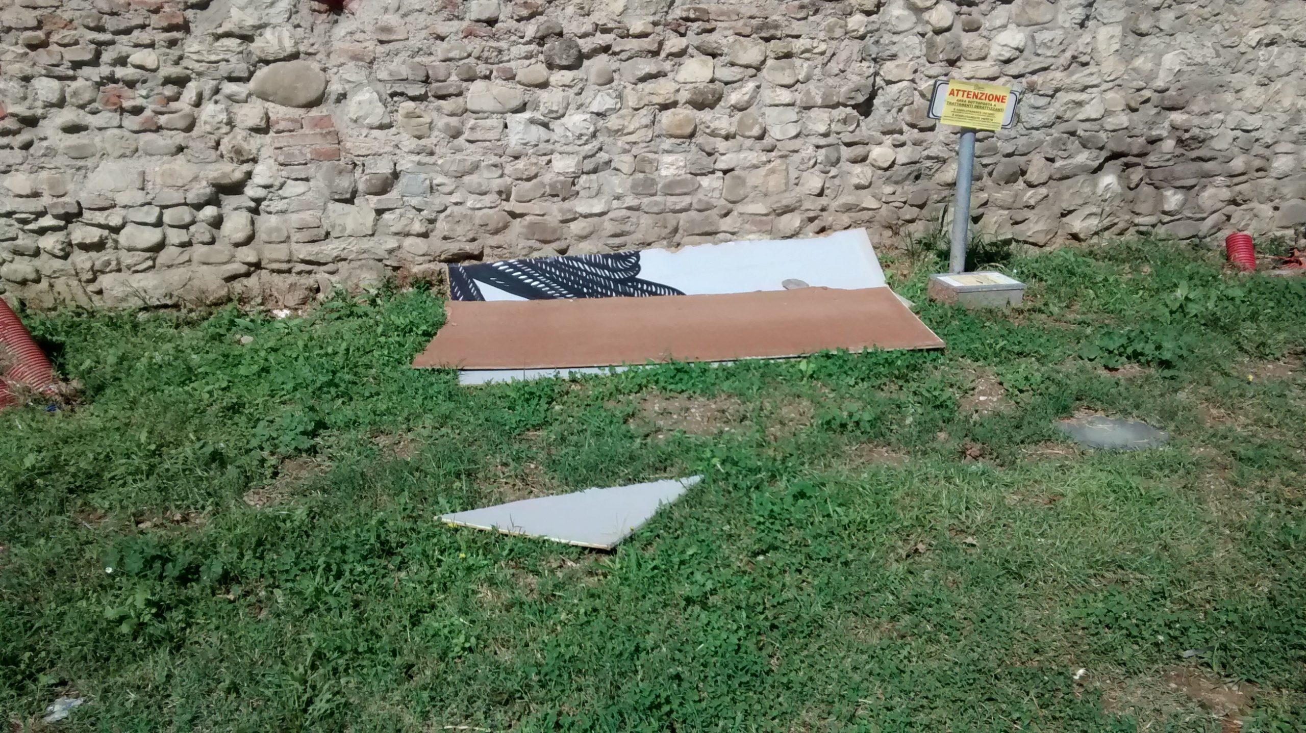 Il Bastione delle Forche questa mattina si è svegliato senza un suo murales: uno dei pannelli creati dagli street artist in occasione della Kermesse Prato Contemporanea dello scorso maggio è stato infatti gravemente danneggiato, tanto da spezzarsi letteralmente a metà (come vedete nelle foto). La denuncia è proprio di un nostro lettore, che passando dal parcheggio questa mattina ha notato l’opera (raffigurante un corvo e una lattina e risultato di una ricerca storica e artistica a cui ha collaborato Gianluca Marziani) deturpata questa notte.