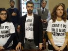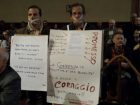 Il consiglio comunale sull’ampliamento dell’aeroporto di Peretola, a seguito del quale il sindaco Biffoni deciderà se presentare ricorso al Tar, si è aperto con una duplice protesta. I tre consiglieri del Movimento 5 Stelle si sono presentati con una T-shirt dal messaggio inequivocabile: “Grazie Pd per il nuovo aeroporto”. All’indirizzo del governatore Rossi e del sindaco Biffoni le proteste da parte dei rappresentanti dei Comitati, che non sono stati invitati a partecipare al Consiglio comunale di oggi, aperto all’ascolto di associazioni di categoria e sindacati. Alcuni esponenti dei Comitati si sono così presentati in Aula con la bocca cucita – stile Hannibal Lecter – e con cartelloni di protesta che inneggiano alla coerenza. Il clima, fin da subito molto teso, si è surriscaldato già dal primo intervento, quello del presidente di Confesercenti Maurto Lassi, che ha ricevuto fischi dal pubblico quando pur sottolinenando l’opportunità di avere garanzie sull’impatto sanitario, ha sostenuto che l’adeguamento di Peretola è necessario, “inserito in un sistema di sviluppo infrastrutturale che comprenda la terza corsia dell’A11, la tramvia e il potenziamento dei collegamenti ferroviari con Firenze”.
