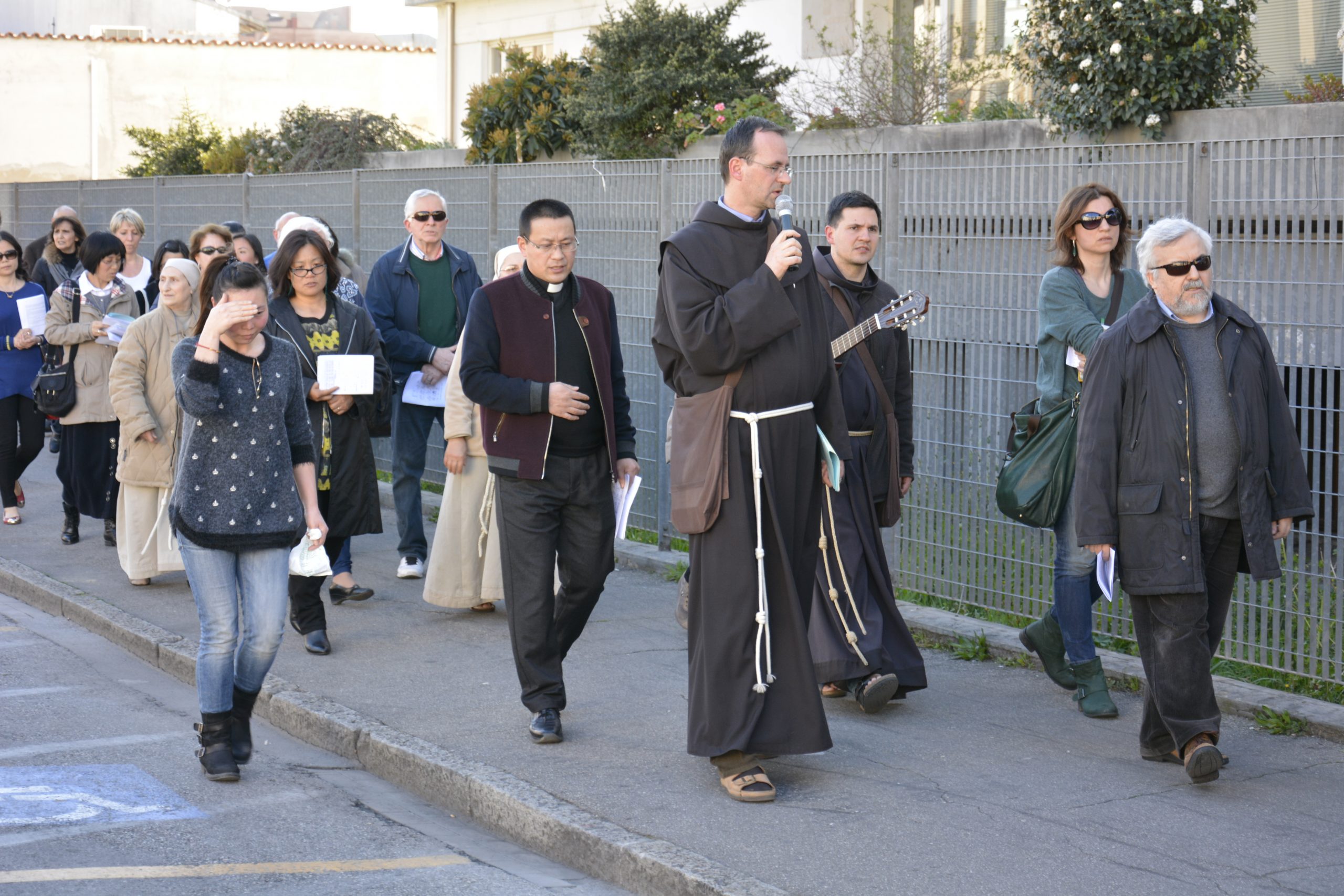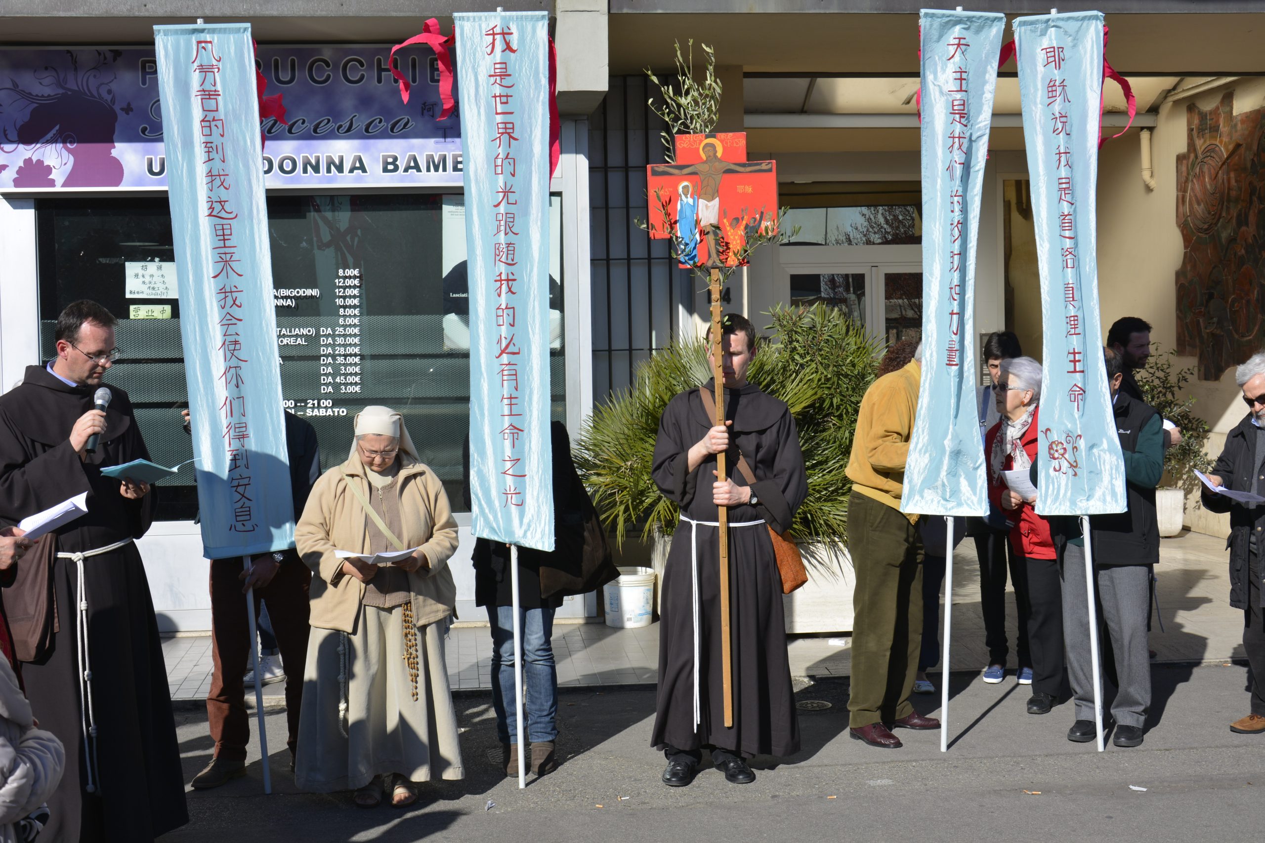Come di consueto, l’animazione della via crucis è stata affidata, oltre che al cappellano della comunità cattolica cinese, don Francesco Saverio Wang, anche ai francescani della Comunità di Maria Madre dell’Incontro e alle suore francescane del Vangelo.