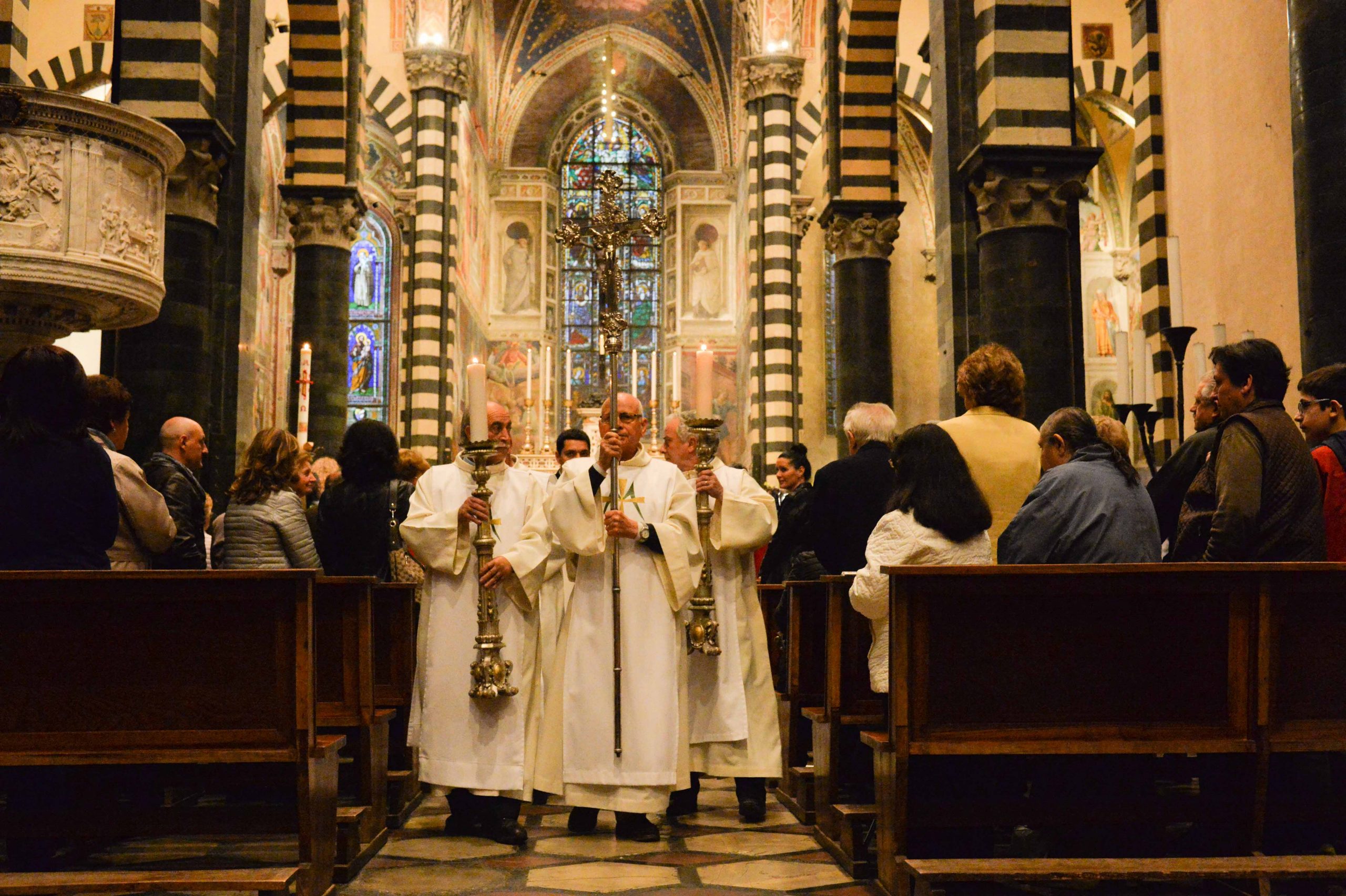 Alla messa erano presenti i rappresentanti dei gruppi giovanili parrocchiali e quaranta diciottenni chiamati a esprimere la propria Professione di fede. «Voi qui presenti – ha osservato il Vescovo – siate una piccola parte dei 40mila adolescenti tra i 14 e i 35 anni che vivono a Prato, di questi, 11mila sono stranieri. Quanti tra i vostri coetanei sono battezzati? Quanti frequentano la parrocchia?», si è chiesto monsignor Agostinelli, che ha aggiunto: «Il mio pensiero va a questo folto gruppo che noi non siamo riusciti a incontrare e che non hanno un’appartenenza e vivono da isolati anche se quasi sempre in mezzo ad una folla chiassosa ma indifferente».