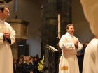 I riti dell’ordinazione hanno previsto come primo segno la vestizione, con la consegna dei paramenti sacerdotali ai due seminaristi. Don Stefano è stato aiutato dal rettore don Scaccini, amico di lunga data, e don Marco da don Emilio Riva, oggi parroco del duomo ma in passato alla guida di San Giovanni Bosco, sua parrocchia di provenienza. Poi il Vescovo ha unto le mani dei due nuovi sacerdoti con il crisma e ha consegnato loro il pane e il vino. Da quel momento possono consacrare l’eucaristia, diventando così preti a tutti gli effetti.
