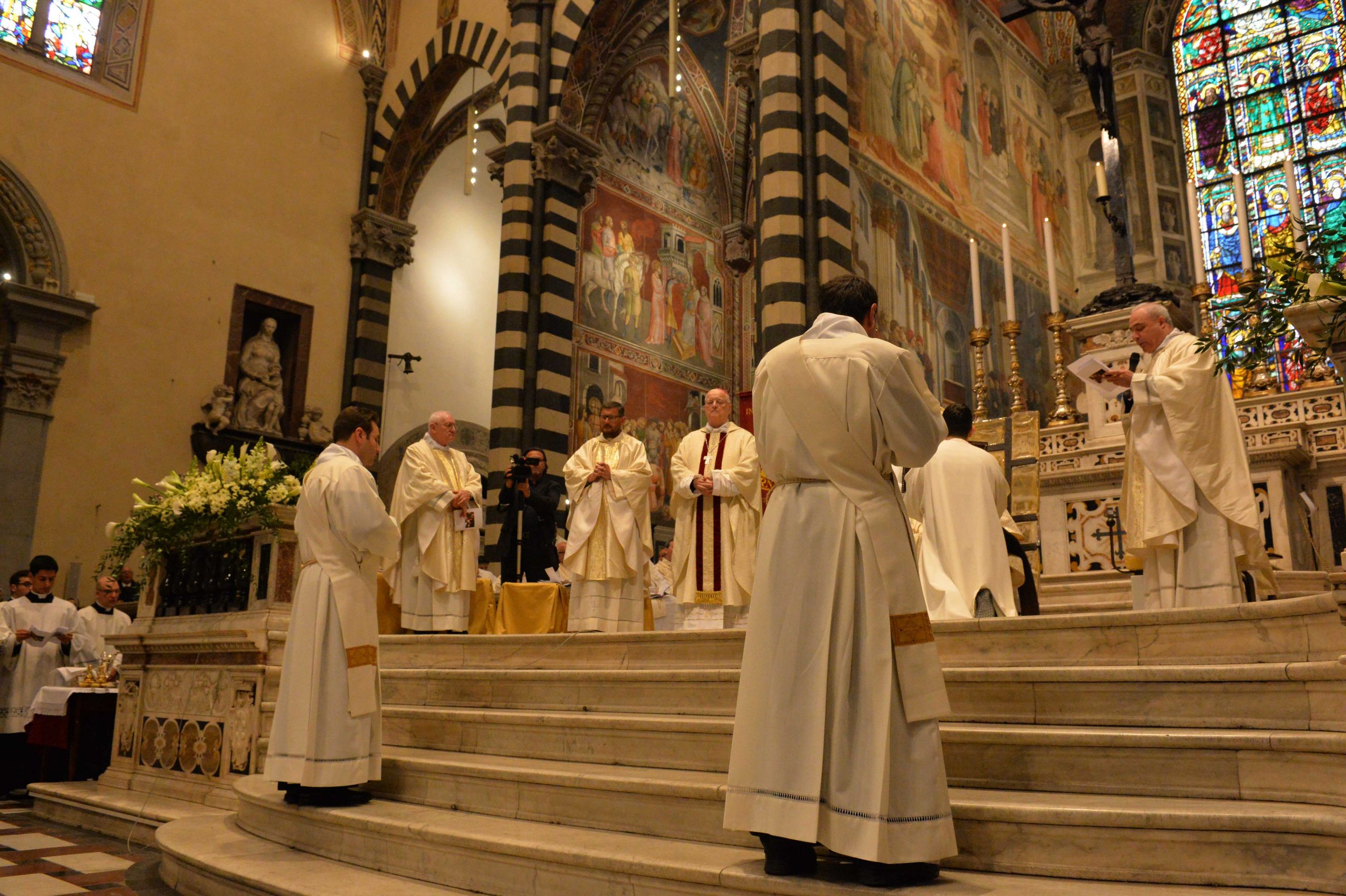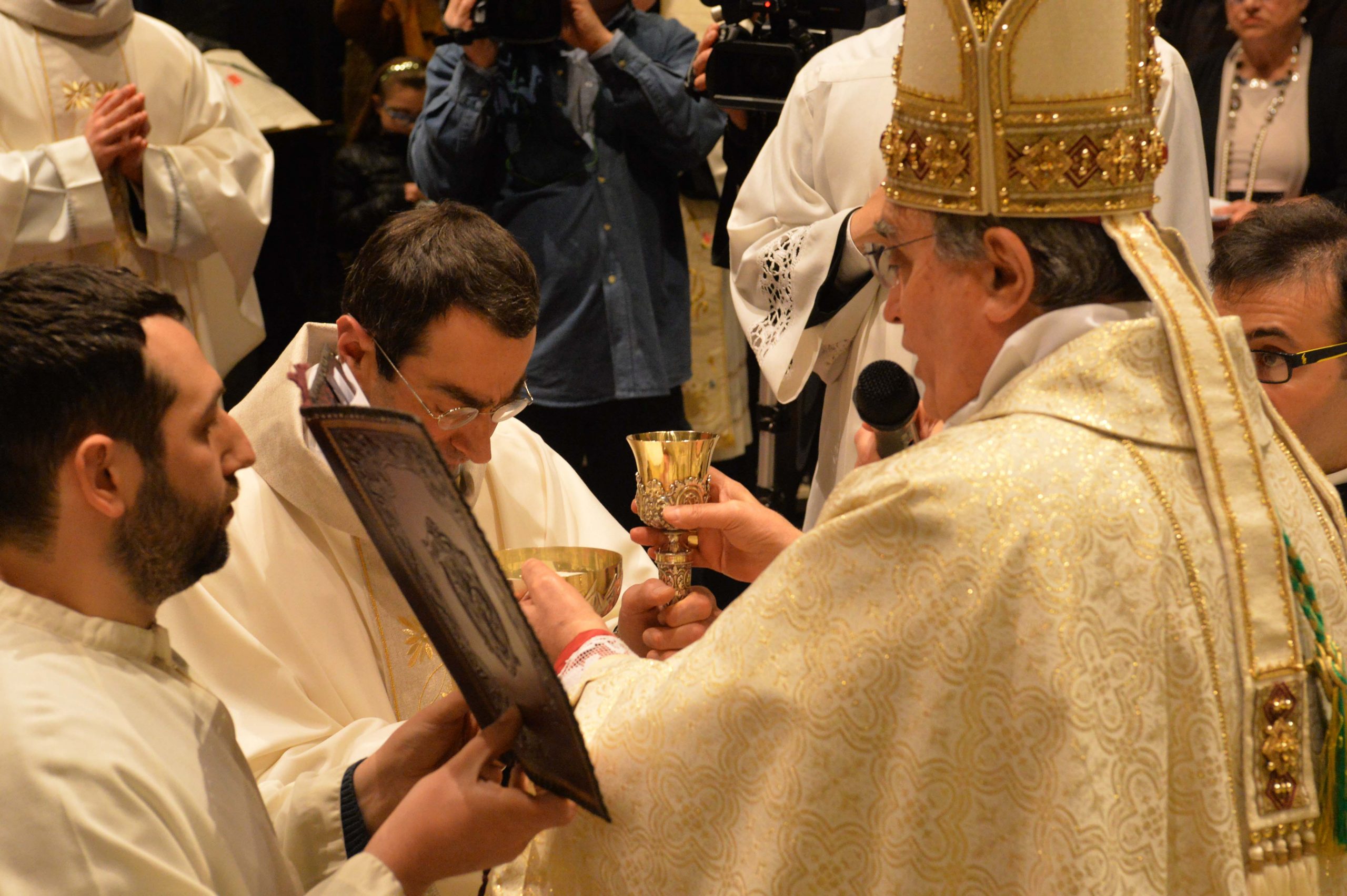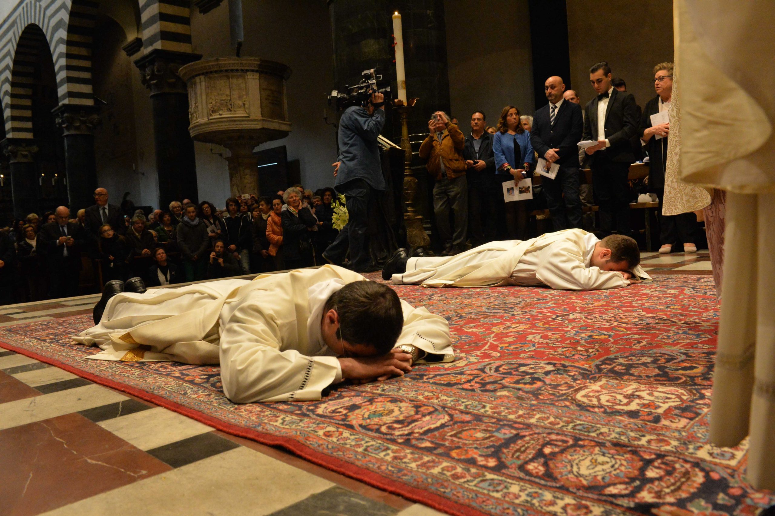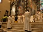 È durata più di due ora la messa, presieduta da mons. Agostinelli e concelebrata da più di settanta preti diocesani. Era presente anche il vescovo emerito Gastone Simoni. La celebrazione è iniziata con la presentazione dei candidati al sacerdozio da parte del rettore don Daniele Scaccini: “Le tante persone che sono qui oggi possono toccare con mano la fedeltà di Stefano e Marco a Dio. Speriamo che altri trovino risposta all’invito di essere collaboratori del Signore”. Quando mons. Agostinelli ha acconsentito, secondo quanto prevede la formalità del rito, all’ordinazione dicendo “sono degni di ricevere il presbiterato”, l’assemblea si è sciolta in un lungo applauso.