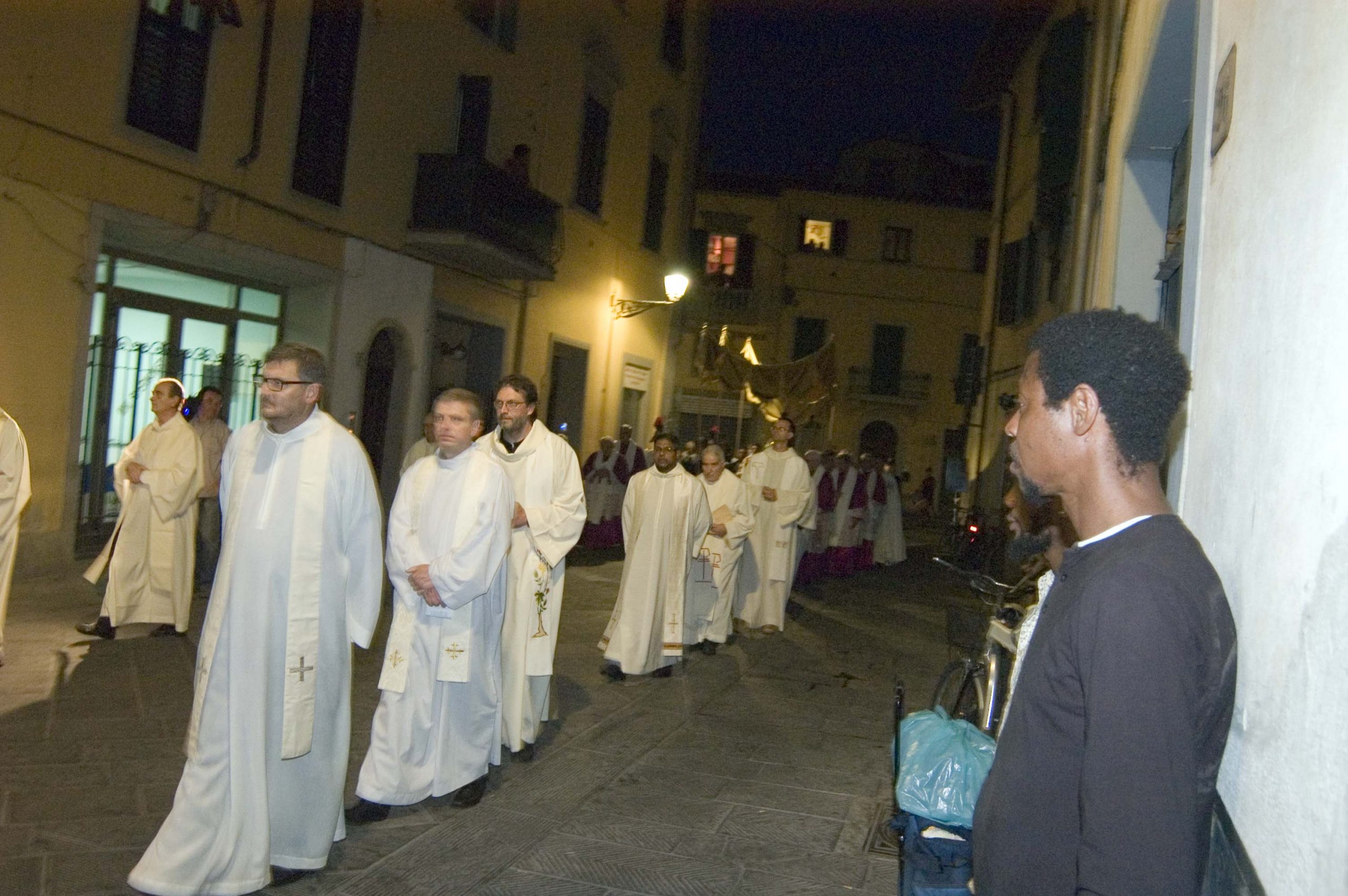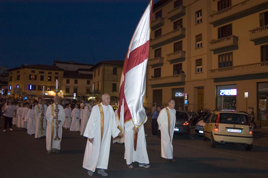 Non era mai capitato che così tanti pratesi, tutti insieme e in modo composto, percorressero a piedi quelle strade. Questa sera, giovedì 4 giugno, in via Santa Margherita e in via Pier Cironi, in quel «triangolo» da tempo al centro della cronaca cittadina per episodi di degrado e microcriminalità, è passata la processione del Corpus Domini. E Prato ha risposto con una fortissima partecipazione, sono state oltre 1500 le persone che hanno sfilato insieme al Santissimo Sacramento portato dal vescovo Franco Agostinelli per le strade del centro cittadino.