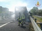 Un pullman ha preso fuoco sull’autostrada Firenze – Mare, tra Prato Ovest e Pistoia, al km 23, in direzione Pisa. L’incendio, che per fortuna non fa registrare feriti, si è verificato attorno alle 14,45 e ha provocato code fino a 4 chilometri (nella foto). Il veicolo incendiato è un mezzo di Trasporti Toscani, la società del gruppo Cap che nel settembre 2014 ha rilevato la Lazzi. Il pullman era fuori servizio e stava rientrando a Montecatini da Firenze, quando l’autista si è accorto del fumo proveniente dal motore, nella parte posteriore, ed ha accostato. Sul posto sono intervenute la polizia stradale e i vigili del fuoco di Prato con una squadra e un’autobotte. Le operazioni di spegnimento e di bonifica si sono concluse attorno alle 16.