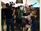 Una trentina di persone in tutto, tra registi, costumisti, truccatori; “organizzati benissimo: avevano persino uno chef – raccontano – assoldato per cucinare per tutti pranzo e cena in modo da non dover mai abbandonare il set”.