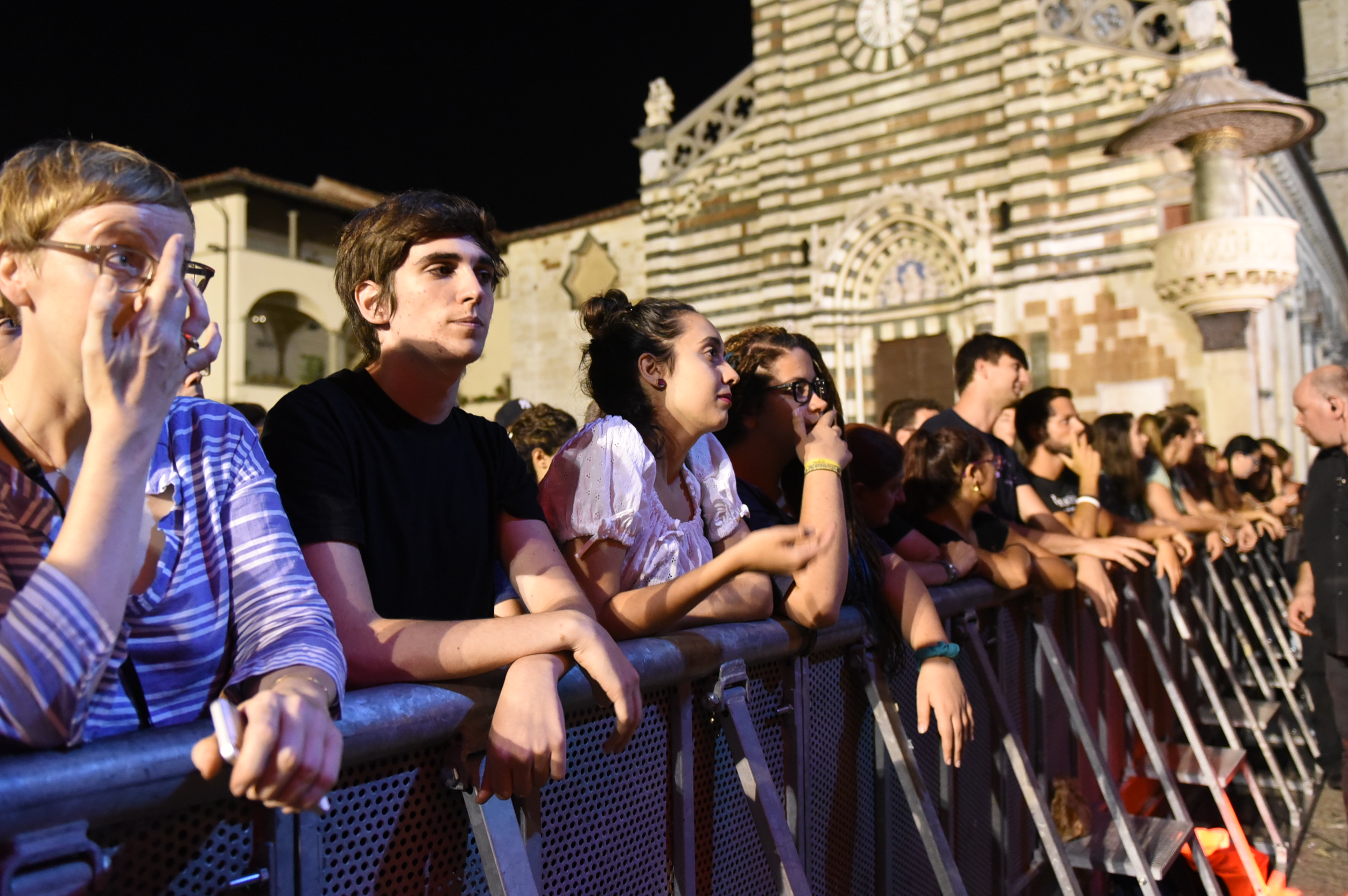 Sono arrivati nelle prime ore del mattino da Milano, Roma, Firenze e ovviamente da tutta Prato. I fan più accaniti degli Interpol si sono assicurati un posto sotto al palcoscenico appena aperti i cancelli di piazza Duomo. Chi alla prima esperienza live, chi (addirittura) al quindicesimo tour, gli affezionati del gruppo americano capeggiato da Paul Banks non hanno fatto mancare il supporto e l’affetto ai loro beniamini. E lo spettacolo – come previsto – non si è fatto attendere.