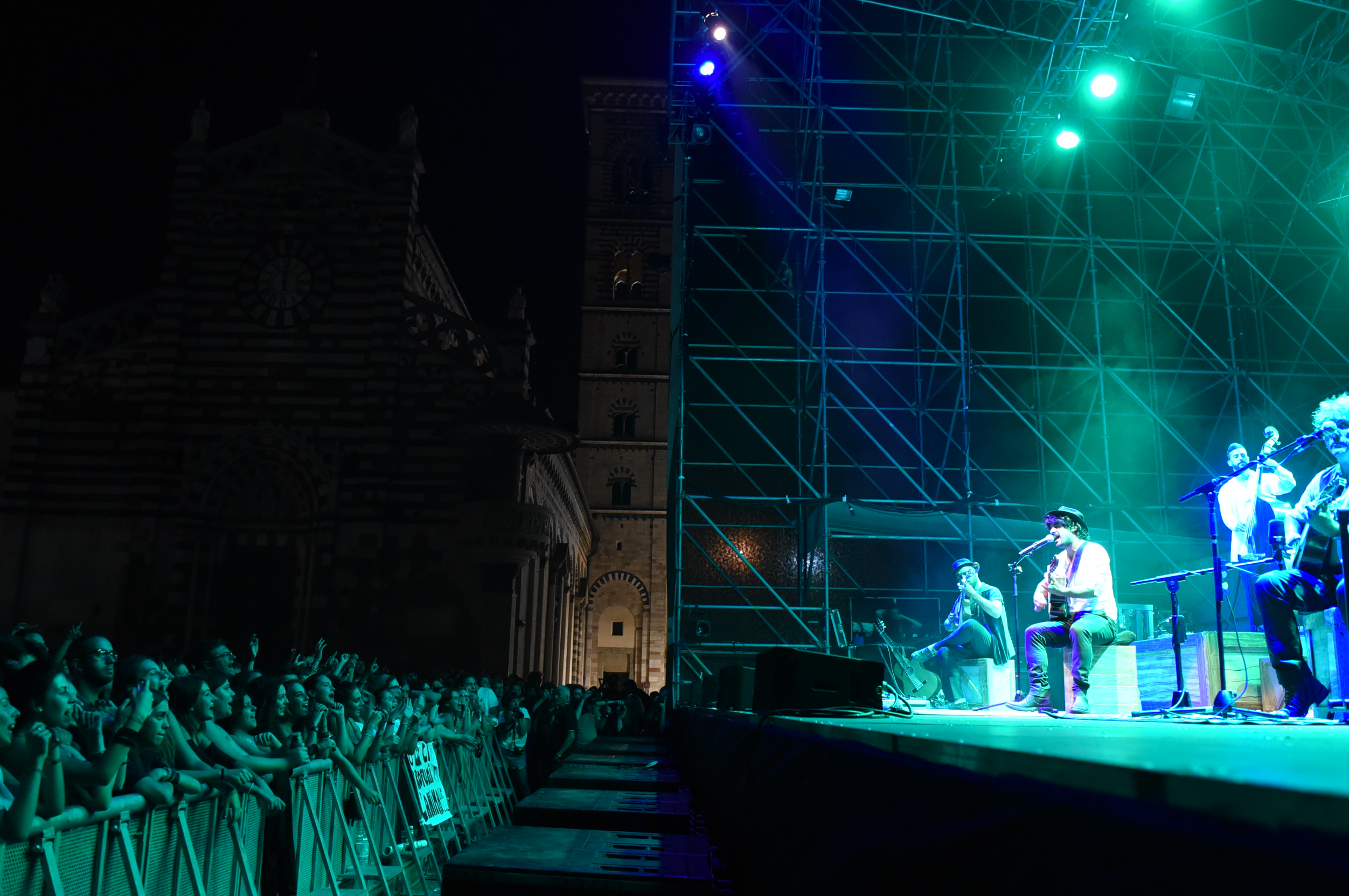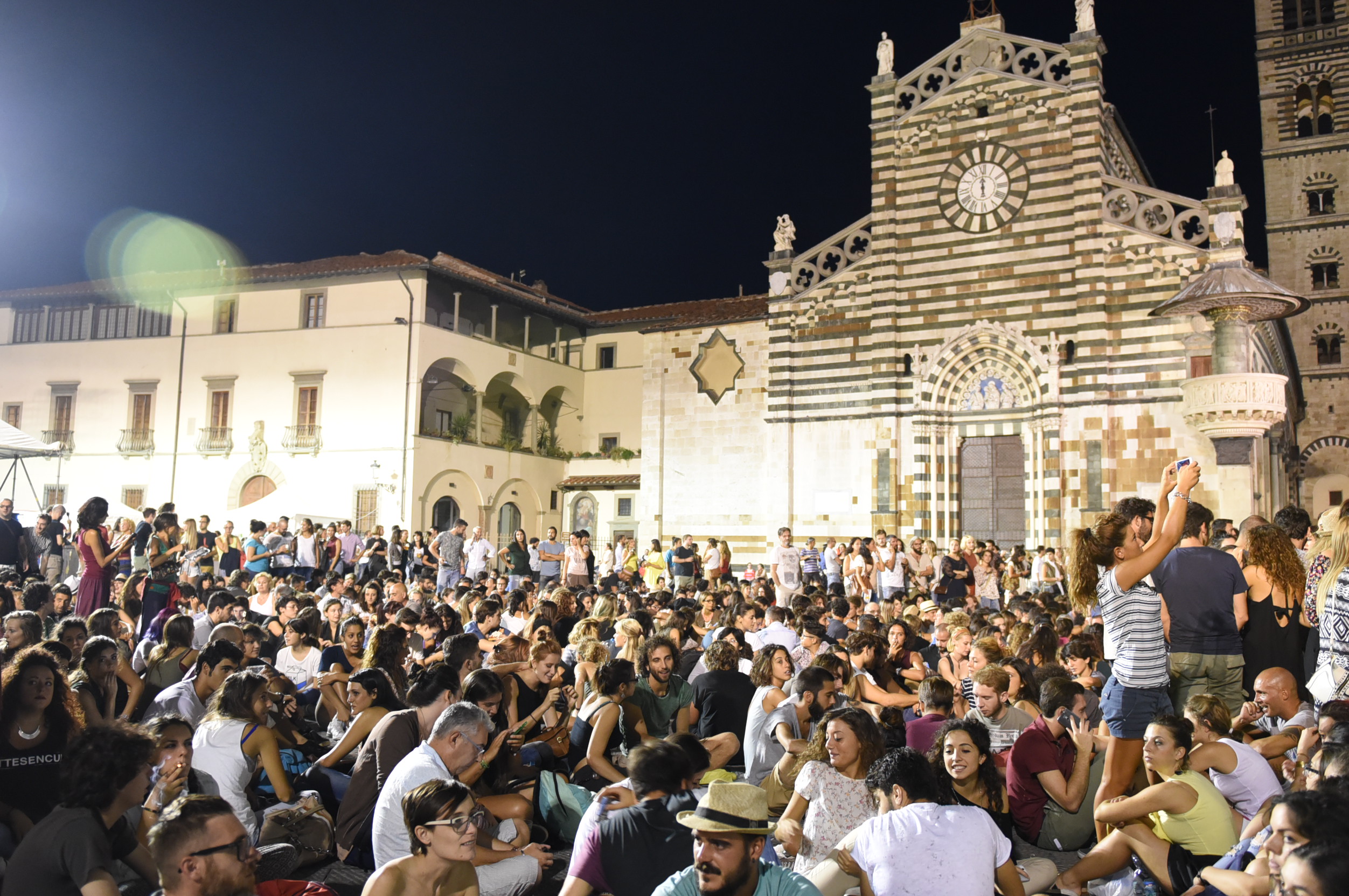 Piazza del Duomo gremita per il secondo grande concerto di “Settembre Prato è spettacolo 2015” con oltre 4mila persone schierate sotto al palcoscenico per vivere una serata all’insegna della grande musica nazionale. Tanti, al solito, i fan accorsi da ogni parte d’Italia: Roma, Trieste, Napoli, Salerno. Tutti insieme per vedere da vicino l’artista del cuore, che durante l’ultimo tour ha registrato 40mila presenze e collezionato 60mila copie vendute con i tre album “Bar della rabbia”, “Supersantos” e “Al monte”.