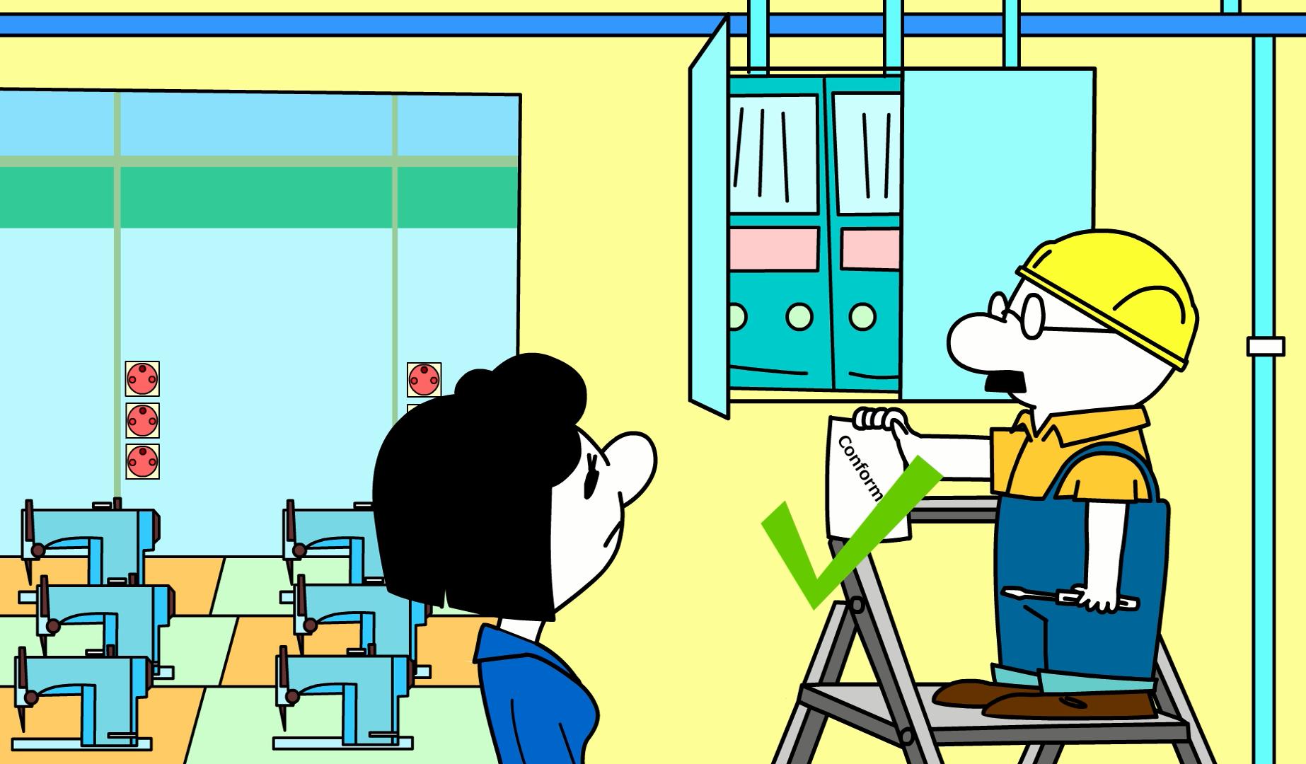 I cartoni promuovono buone regole di conduzione aziendale trattando tre dei temi più “caldi” fra le questioni legate all’emersione delle aziende: gli impianti elettrici, la corretta gestione dei rifiuti speciali, i locali adibiti al consumo di pasti in azienda.