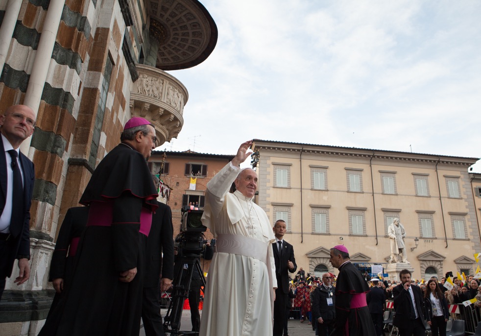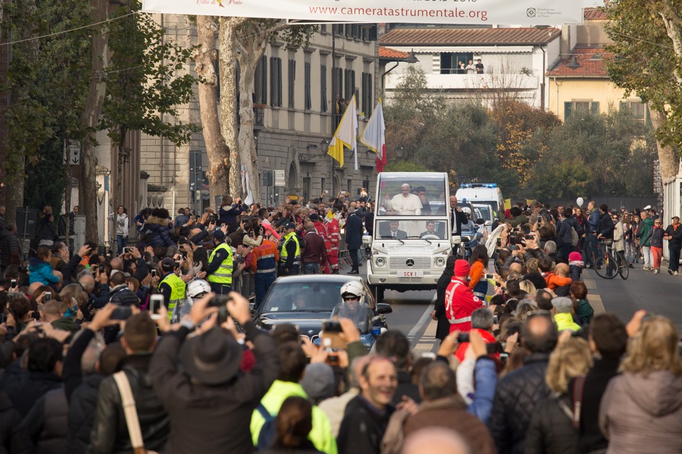 Poi il richiamo forte del Papa alla dignità del lavoro: “La sacralità di ogni essere umano richiede per ognuno rispetto, accoglienza e un lavoro degno – ha detto Francesco -. Mi permetto di ricordare adesso i 5 uomini e le due donne di cittadinanza cinese morti due anni fa a causa di incendio in una fabbrica industriale di Prato. Vivevano e dormivano all’interno dello stesso capannone in cui lavoravano. In un piccolo dormitorio ricavato in cartone e cartongesso. Questa è una tragedia dello sfruttamento e delle condizioni umane di vita e questo non è lavoro degno. La vita di ogni comunità esige che si combattano fino in fondo il cancro della corruzione, il cancro dello sfruttamento umano e lavorativo e il veleno dell’illegalità. Dentro di noi e insieme agli altri, non stanchiamoci mai di lottare per la verità!”