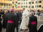 Si è presentato come un “pellegrino venuto in questa città ricca di storia e di bellezza”, e ha lanciato ai pratesi il suo messaggio di speranza, di coraggio e di apertura al prossimo e all’ultimo. “Uscire vuol dire rischiare, ma non c’è fede senza rischio” ha detto invitando il popolo cristiano ad una rinnovata passione missionaria. Tanti i riferimenti a Prato nel discorso alla città pronunciato da Papa Francesco dal pulpito e molti gli apprezzamenti per una città che non ha dimenticato la solidarietà e la carità nell’affrontare la crisi. “Per un discepolo di Gesù nessun vicino può diventare lontano. Anzi, non esistono lontani che siano troppo distanti, ma soltanto prossimi da raggiungere. Vi ringrazio per gli sforzi costanti che la vostra comunità attua per integrare ciascuna persona, contrastando la cultura dell’indifferenza e dello scarto. In tempi segnati da incertezze e paure, sono lodevoli le vostre iniziative a sostegno dei più deboli e delle famiglie, che vi impegnate anche ad “adottare”».
