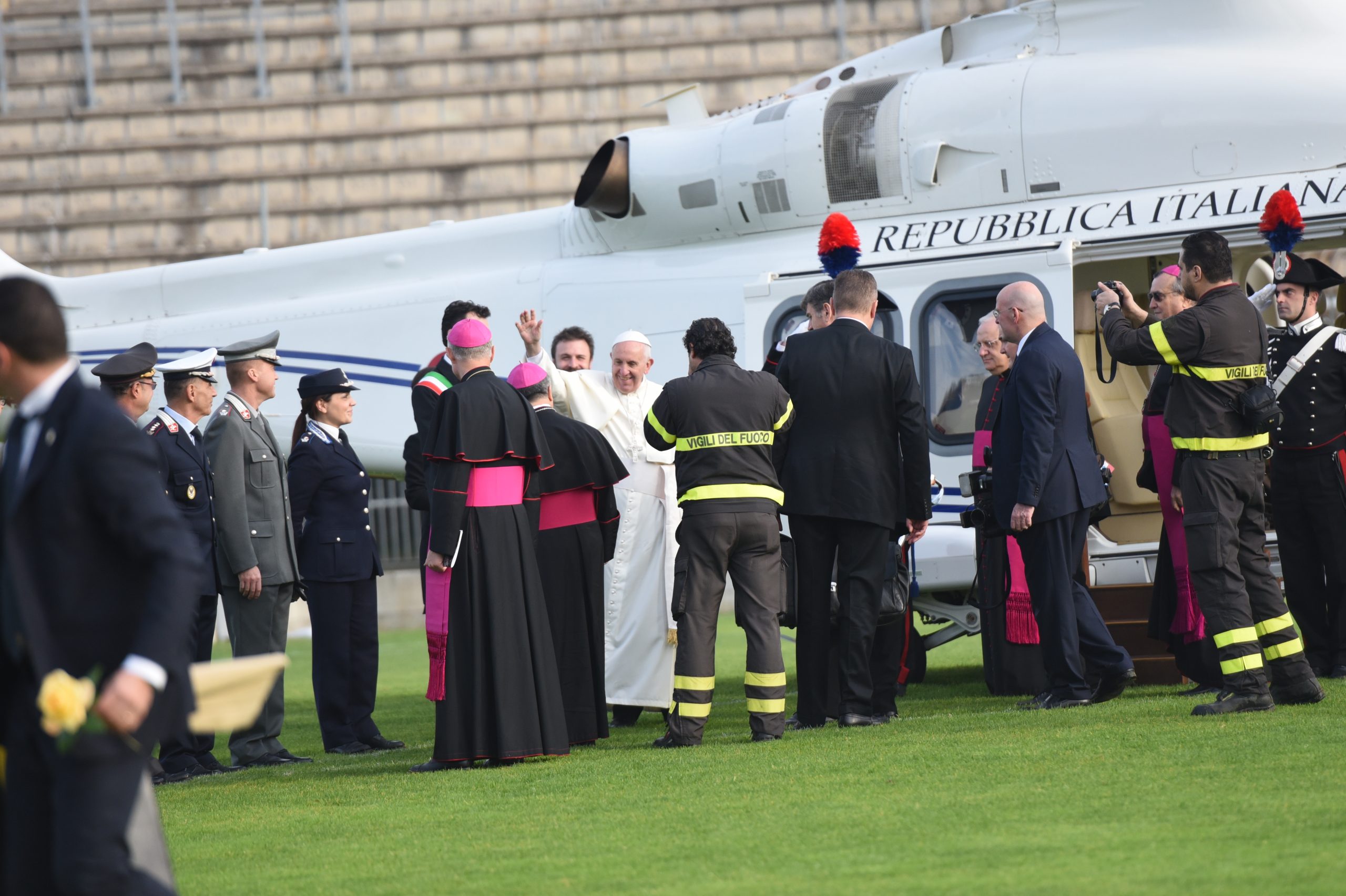 La visita del Papa a Prato si avvia alla sua conclusione: la Papa mobile ripercorre all’inverso la strada che da piazza Duomo conduce al Lungobisenzio. Allo stadio lo attendono, sulle tribune, i giocatori delle varie scuole calcio pratesi e i ragazzi dei due cori diretti da Patrizia Calussi, le voci delle quali hanno accolto Francesco anche all’inizio della mattinata. Dopo Prato, il Papa è atteso a Firenze.