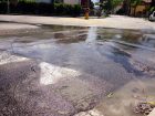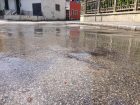 L’acqua zampilla sull’asfalto in diversi punti: si tratta di una perdita di grossa entità.
