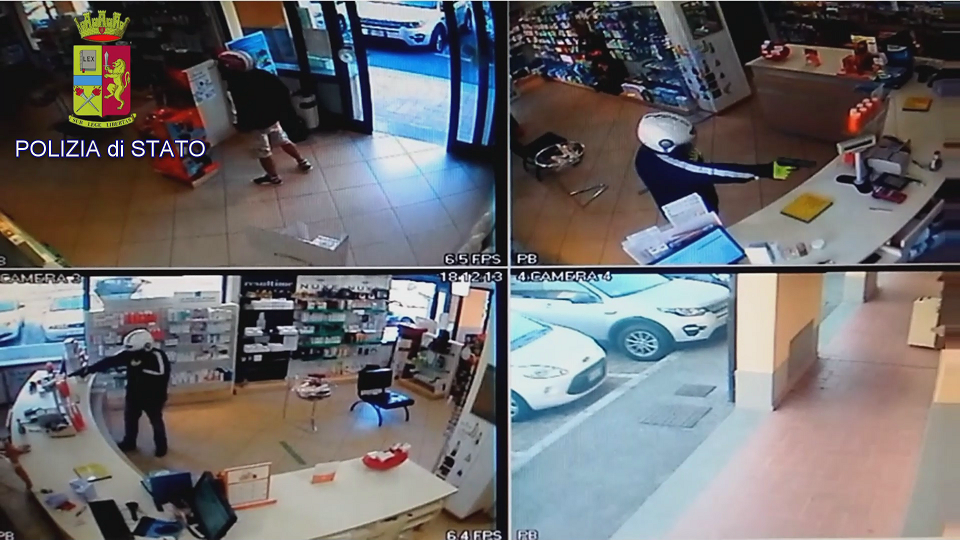 Arrestato dalla polizia il presunto autore di sette rapine avvenute a Prato tra maggio 2015 e lo scorso febbraio. Si tratta di Mirko Mocera, 34 anni, pratese, accusato di aver rapinato due farmacie, un supermercato, tre uffici postali e una tabaccheria. I colpi, che nel complesso hanno fruttato un bottino di circa 5 mila euro, avvenivano sotto la minaccia di una pistola e di un coltello, come si vede dalle immagini delle telecamere di videosorveglianza.