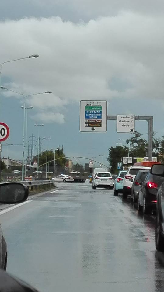 Tornando a Prato, è stata a lungo interdetta al transito piazza della Stazione, allagata in più punti. Chiuse le piste ciclabili lungo il Bisenzio in tutti i tratti in cui la pista costeggia il fiume. Chiusa per allagamenti anche via per Iolo. Ad aggravare la giornata nera per il traffico cittadino ci sono stati alcuni incidenti, veicoli in panne come un camion sulla Declassata in zona Ponte Lama attorno alle 15, e il malfunzionamento di alcuni semafori, come in via Bologna (nella foto sotto).