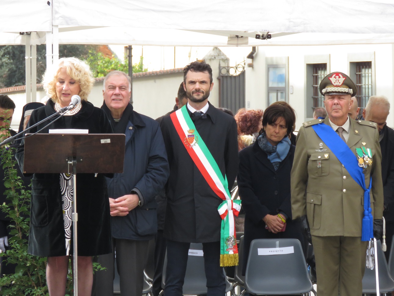 Subito dopo la lettura, da parte del prefetto, del messaggio inviato nell’occasione dal Presidente della Repubblica, è intervenuto uno studente dell’Istituto Comprensivo “Primo Levi”, che ha letto una lettera scritta dal soldato pratese Giovanni Frati mentre si trovava al fronte nel 1915.