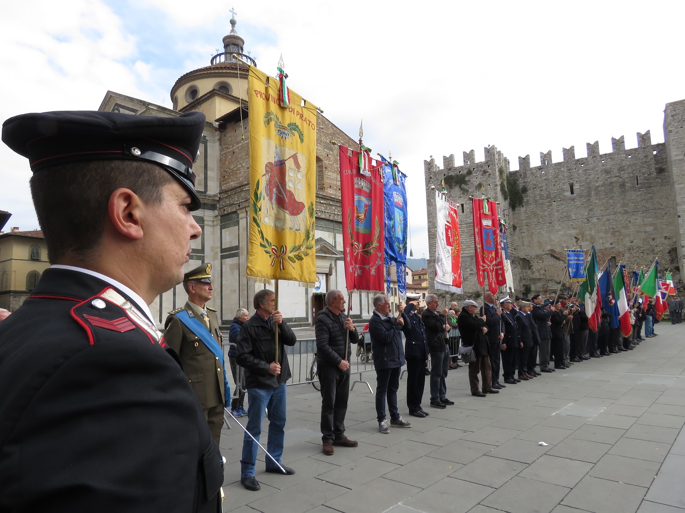 È stata celebrata anche a Prato, stamani, la Festa dell’Unità Nazionale e giornata delle Forze Armate. Le cerimonie si sono aperte con una S. Messa in suffragio dei caduti nella Cattedrale di S. Stefano. A seguire, in piazza delle Carceri si è tenuta la cerimonia militare. Hanno partecipato, oltre al prefetto Maria Laura Simonetti, il sindaco e presidente della Provincia Matteo Biffoni, il presidente del Tribunale Nicola Pisano, il procuratore della Repubblica Giuseppe Nicolosi, il questore e gli altri comandanti delle forze di polizia ed altre Autorità civili. Presente anche il maresciallo dell’Arma dei carabinieri Giuseppe Giangrande, ferito da colpi d’arma da fuoco il 28 aprile 2013, mentre si trovava in servizio a Roma, di fronte a Palazzo Chigi. Hanno assistito alle celebrazioni, anche le associazioni combattentistiche e d’arma ed alcune classi dell’Istituto Comprensivo “Primo Levi” di Prato.
