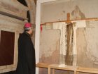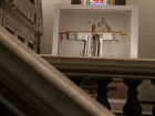 Un camice appeso su una grande croce di legno, macchiato di sangue tanto quanto la tela che, alle spalle, completa l’opera: una sorta di altare su cui si incontrano dolore e pietà umana. E’ la crocifissione evocata dal lavoro dell’artista austriaco Hermann Nitsch, che alla vigilia della chiusura diocesana del Giubileo della Misericordia arriva in Duomo per dare continuità al percorso di riapertura del Centro Pecci. Un tassello del progetto espositivo “La fine del mondo” (che ha segnato la nuova fase del museo d’arte contemporanea) e che fino al 18 dicembre prossimo sarà esposto all’interno della cappella Inghirami, detta anche della Sacra Famiglia. Il servizio è di Giulia Ghizzani.