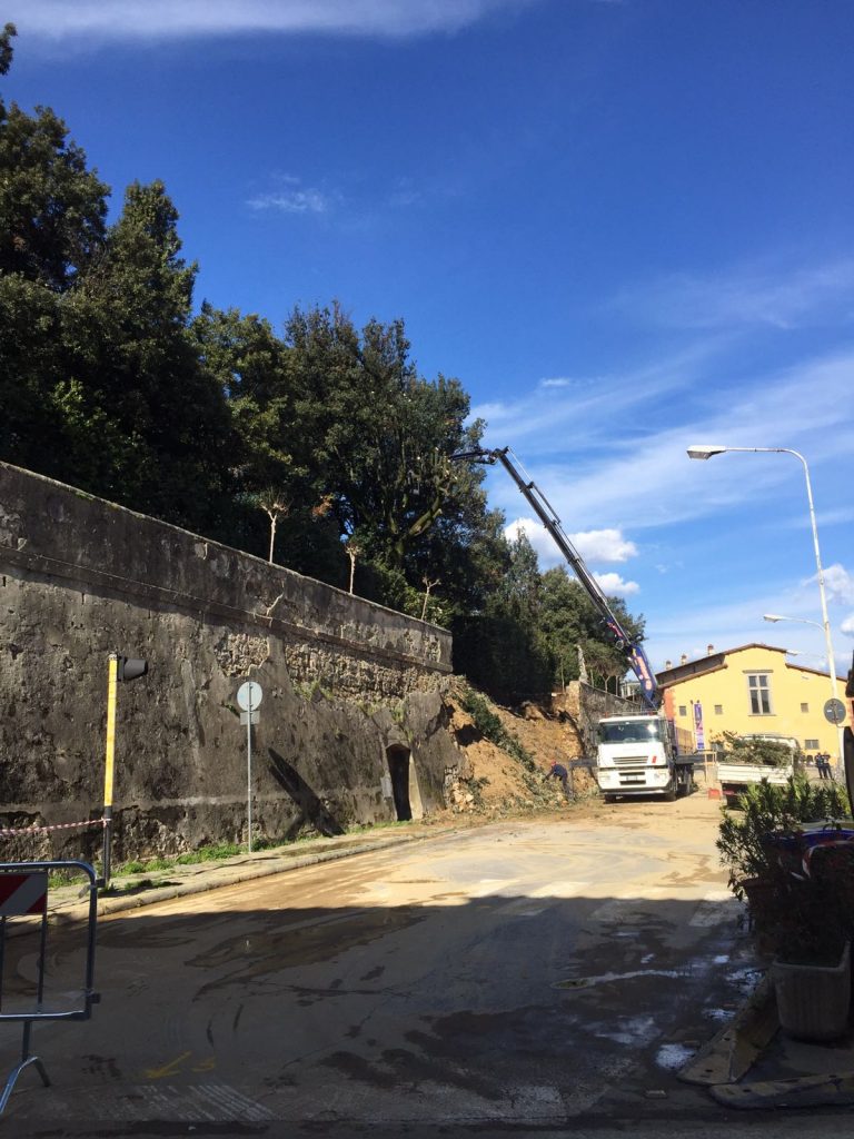 Durante la notte sono state rimosse le macerie e le auto rimaste intrappolate. Tutta l’area interessata dal crollo è stata messa in sicurezza, in attesa di lavori di ripristino del muro. L’intervento dei vigili del fuoco è terminato alle 4 della notte. Stamani il sindaco Martini ha compiuto un nuovo sopralluogo accompagnato dalla vicepresidente e assessore alla cultura della Regione Toscana, Monica Barni, che ha dichiarato di essere in costante contatto con la Sovrintendenza, il Polo Museale e il Ministero dei Beni Culturali, il quale ha assicurato uno stanziamento di fondi utili alla ricostruzione. Ingente il danno subito dalla Villa Medicea che è di proprietà dello Stato e dichiarata patrimonio dell’Unesco. Il Comune conta di riaprire la strada al traffico nei prossimi due giorni, grazie ai lavori di somma urgenza che saranno realizzati dalla Sovrintendenza. Verranno allestite alcune impalcature nella zona del crollo per liberare una corsia dalle macerie e permettere il transito veicolare. Interventi sono stati condotti anche su un leccio monumentale per alleggerirne il peso ed evitare cadute: le radici sono infatti visibili nella porzione di mura crollata.