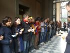 Un sit in per ribadire che Prato è città dell’accoglienza. E’ quello organizzato dai Giovani democratici (gruppo giovani vicino al Pd), Pd, Rete degli Studenti Medi, Cgil, Federazione degli studenti e Anpi ieri pomeriggio all’ingresso del Convitto Cicognini, dove si stavano svolgendo gli ultimi eventi della manifestazione Mediterraneo Downtown. L’intento del sit in era di rispondere pacificamente alla protesta organizzata sabato da un gruppetto di rappresentanti del Movimento Nazionale e Gioventù Identitaria. Presenti, oltre ai rappresentanti delle associazioni citate, anche alcuni rifugiati ospitati sul territorio, il sindaco e gli assessori del comune di Prato Squittieri, Mangani, Faggi e la presidente del consiglio Ilaria Santi: tutti hanno formato una sorta di corridoio umano tenendo in mano delle barchette di carta: “Le barchette sono una risposta allo slogan ‘Ong scafiste’ gridato dal gruppetto in protesta sabato – spiega Maria Logli dei Gd – lo stesso gruppetto era venuto da fuori Prato, quindi non era una vera e propria protesta nata a livello locale, ma la stessa ipotesi lasciata trapelare che a Prato non andasse bene una manifestazione come Mediterraneo Downtown è stata una provocazione che meritava una risposta”.