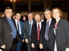 il sottosegretario allo sviluppo economico Antonello Giacomelli, il Vescovo di Prato Franco Agostinelli. il socio di TV Prato srl Marco Duradoni e signora, insieme al direttore di TV Prato Gianni Rossi, nella platea del Teatro Metastasio durante la serata.