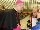 Il coro gospel di Montemurlo “Black & White” ha cantato per Papa Francesco durante l’udienza del mercoledì, ieri 28 febbraio, nell’Aula Paolo VI. La delegazione montemurlese, composta – oltre che dai 30 coristi – da circa 200 persone, era guidata dal sindaco Mauro Lorenzini che ha donato al Santo Padre una copia in argento della Croce di Montemurlo, conservata nella pieve di San Giovanni Decollato alla Rocca. Facevano parte della delegazione anche il vice-sindaco Simone Calamai, gli assessori Gori Luciana, Giuseppe Forastiero, i consiglieri Manuel Fava, Alberto Vignoli, Amanda Ravagli ed Eva Betti. “Una grande emozione, un’esperienza indimenticabile” come ricorda Stefano Arnetoli, coordinatore del coro gospel Black & White.