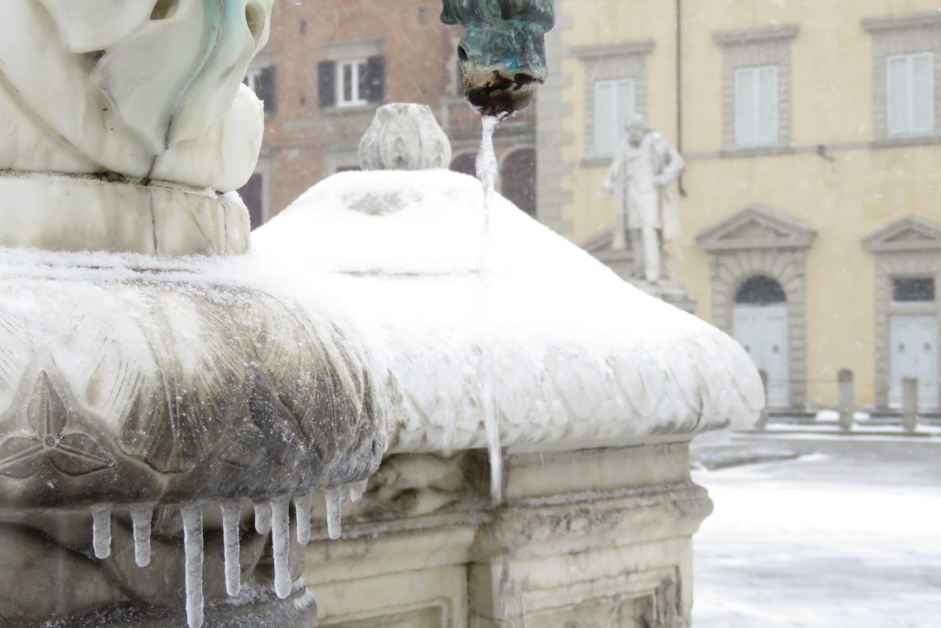 fontana del papero ghiacciata