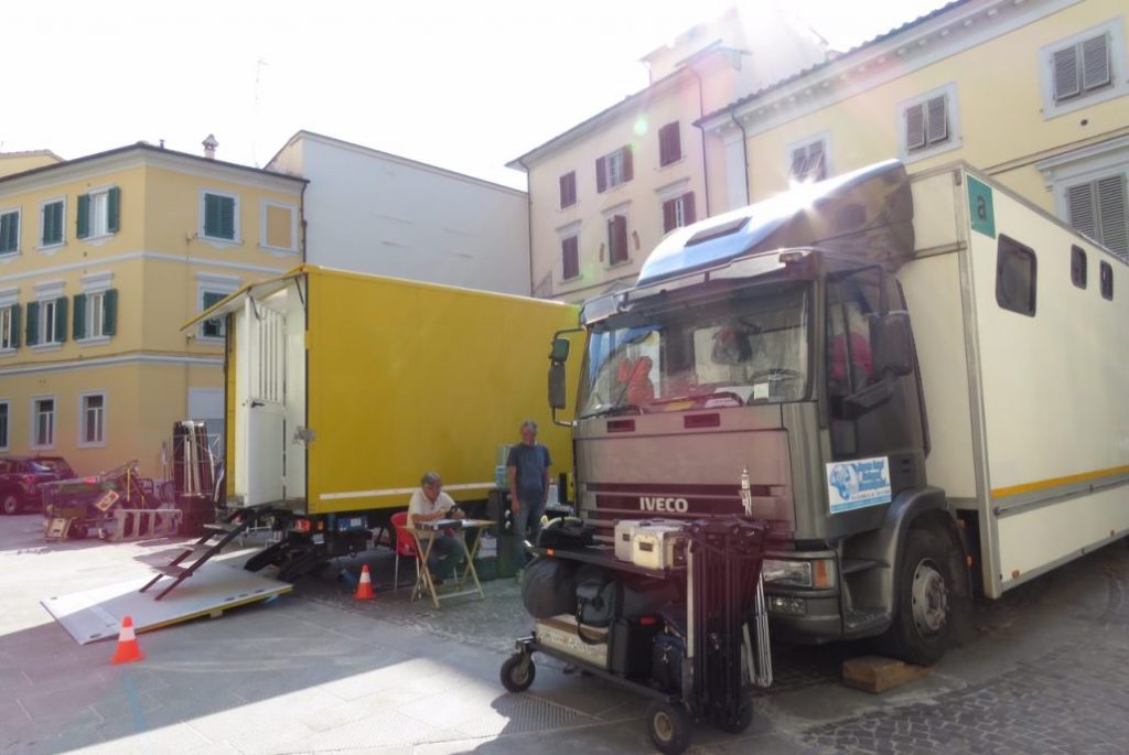 Sono ripartite stamani in città le riprese del nuovo film di Leonardo Pieraccioni “Se son rose”. Da piazza Ciardi, dove la scorsa settimana erano state girate le prime scene, il set si è spostato in pieno centro storico. Camion e attrezzature sono comparsi di buon’ora in piazza Santa Maria in Castello, all’esterno del Giardino Buonamici, dove domani Pieraccioni & C. gireranno nuove scene della pellicola. Oggi, invece, le riprese si tengono al chiuso, all’interno di uno degli uffici del Palazzo Buonamici. Tra gli attori anche Caterina Murino. Tanti i curiosi che si sono avvicinati al quartier generale della produzione, con Pieraccioni sempre disponibile a dispensare saluti e strette di mano.