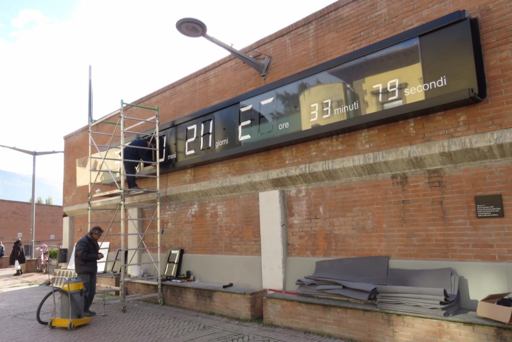Da un esame accurato fatto sull’opera dai restauratori, la ditta Angelinoartworks di Roletto (Torino), insieme con l’artista Alessandra Andrini, è emerso che nonostante le oggettive difficoltà a ripristinare il movimento elettromeccanico dell’opera, poteva essere fatto un tentativo. La volontà dell’artista infatti è sempre stata quella di mantenere il meccanismo originale. Per fare ciò sono state recuperate le palette dei secondi ed una nuova scheda elettronica, mentre per testare il movimento è stato realizzato un nuovo software. Al termine dei lavori di restauro è stato avviato per alcuni mesi un test per verificare l’affidabilità del meccanismo soprattutto in caso di esposizione al sole. Visti i buoni risultati sono stati presi alcuni accorgimenti per garantire una ventilazione adeguata all’interno del cassone, la posa della scheda madre in zona protetta dagli agenti atmosferici e dagli sbalzi di temperatura e il fissaggio del policarbonato esterno per evitarne lo spostamento. L’intervento di restauro ha avuto un costo di circa 20mila euro. “La collaborazione tra l’artista Alessandra Andrini, puntuale nelle sue osservazioni e nei suggerimenti, e la ditta di restauro che già si era occupata della prima installazione dell’opera, ha permesso di ottenere il risultato ottimale. – spiega l’assessore alla Cultura Simone Mangani – Chiudiamo idealmente l’anno del 70° anniversario dall’entrata in vigore della Costituzione”.