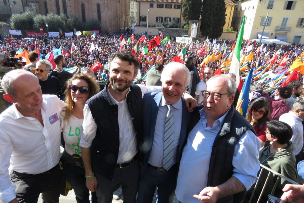 Sulla scalinata del Castello, palco naturale della manifestazione, erano presenti il presidente della Regione Enrico Rossi, il presidente del consiglio regionale Eugenio Giani, i parlamentari Pd Antonello Giacomelli e Caterina Bini, l’assessore regionale Stefano Ciuoffo, la consigliera regionale Pd Ilaria Bugetti, il segretario nazionale di Sinistra Italia Nicola Fratoianni. In piazza anche Rosi Bindi.